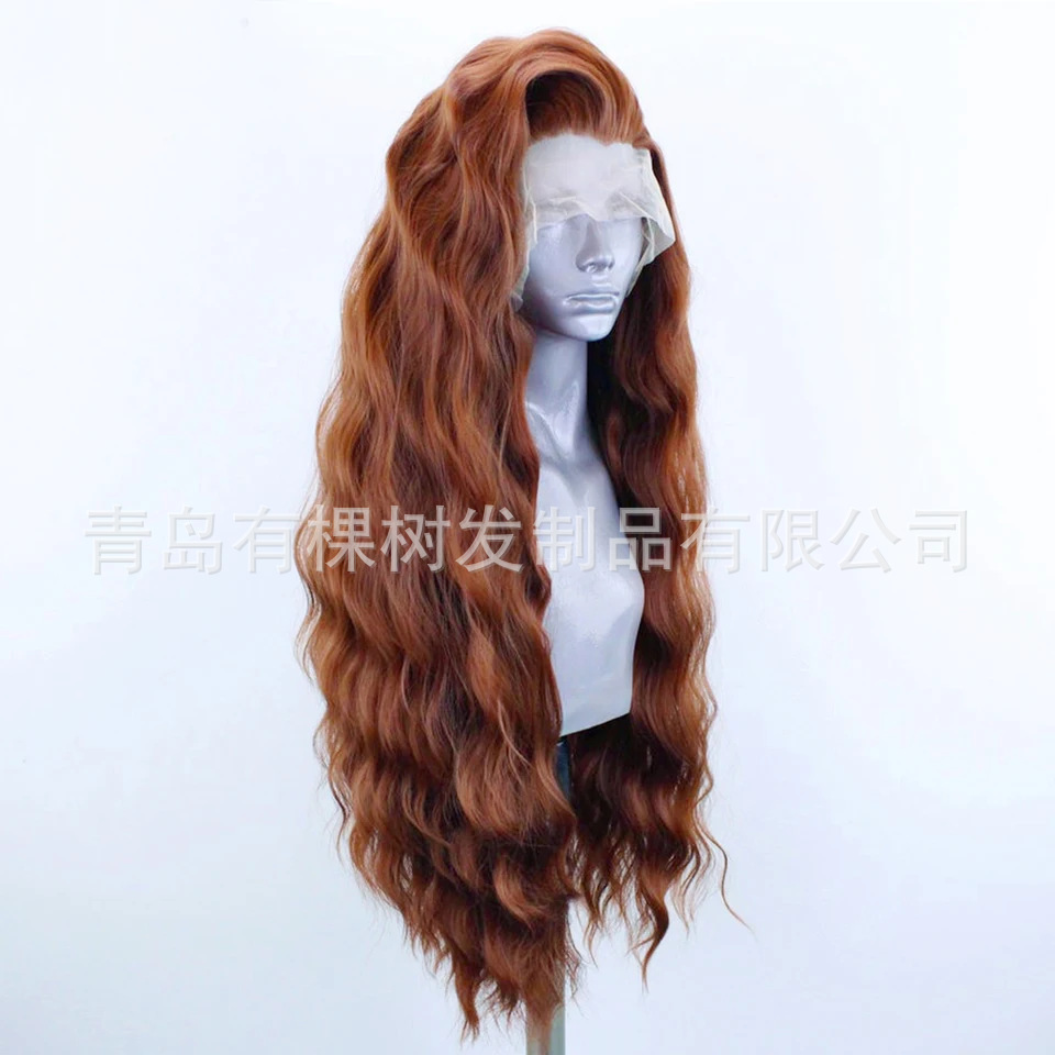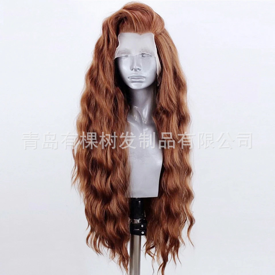 外国貿易の欧米の化学繊維の前のレースのかつらの全体の頭のカバーの茶色の大きい波のファッションのふわふわしている現物は代行します。
