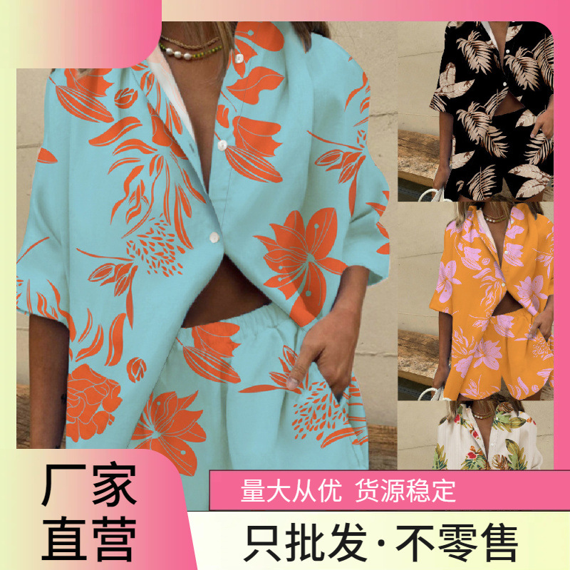 2023欧米の新型女装クロスボーダー半袖プリントシャツ2点セット