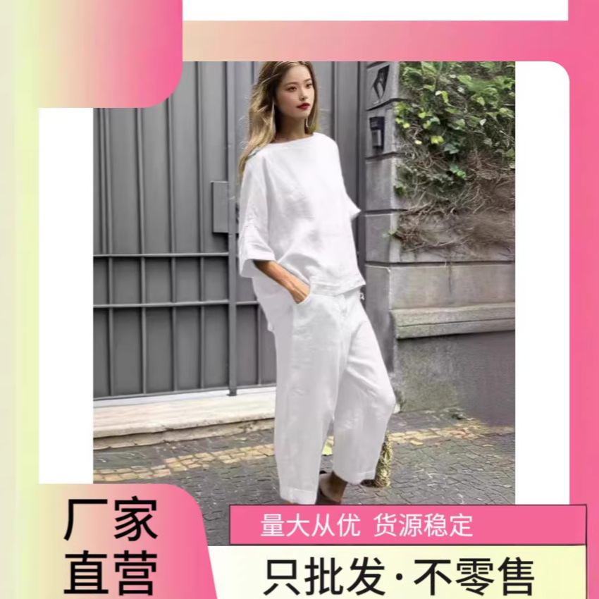 現物2023国境を越えたアマゾン速売欧米の女装ファッションカジュアルでゆるい純色綿麻2点セット
