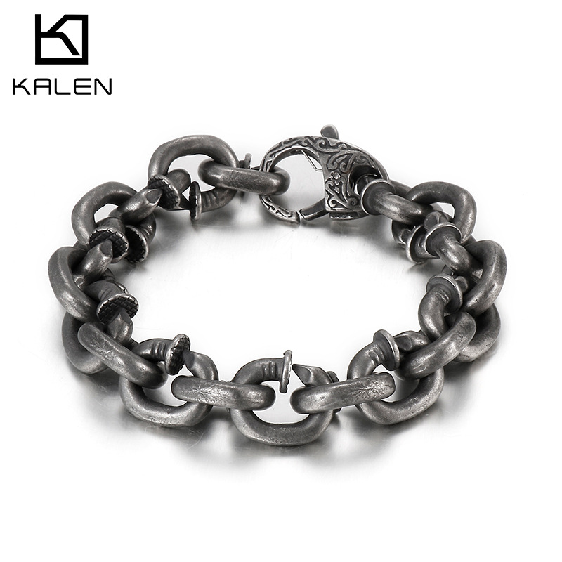 ファッション創意個性釘ブレスレット復古風煮黒角型柳釘ステンレス男性ブレスレットセット