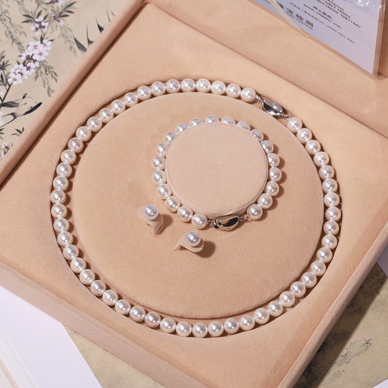 卸売りは皮をむかない真珠の貝の玉のネックレスの女性の金の3セットのアクセサリの母の日のプレゼントの生放送の贈り物です。
