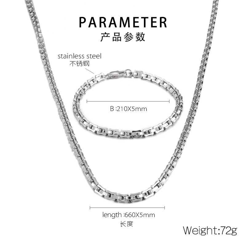 鋒騰新作ins風創意ステンレス素チェーンセット男性個性5mm竹節ブレスレットネックレス