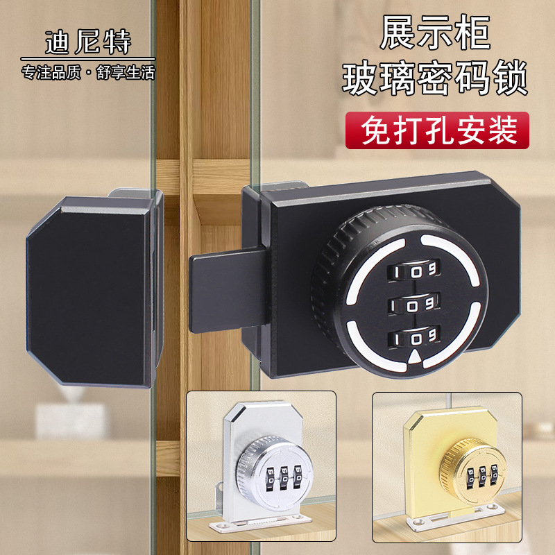 免打孔玻璃展示柜门锁手办公仔移门推拉门橱窗锁具酒柜书柜密码锁