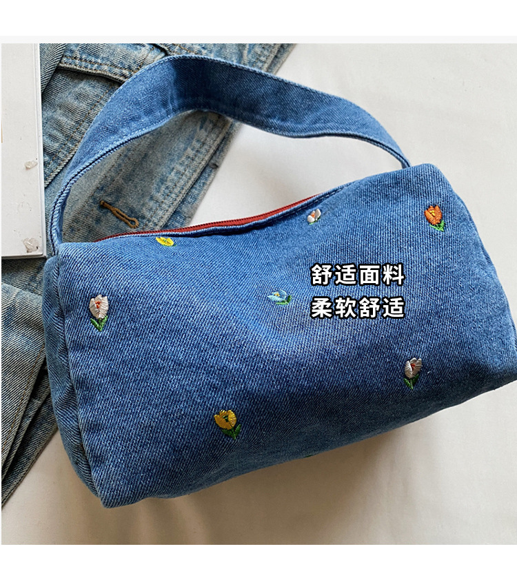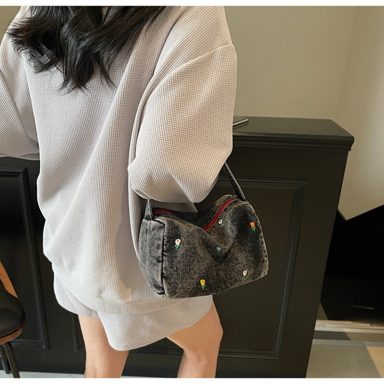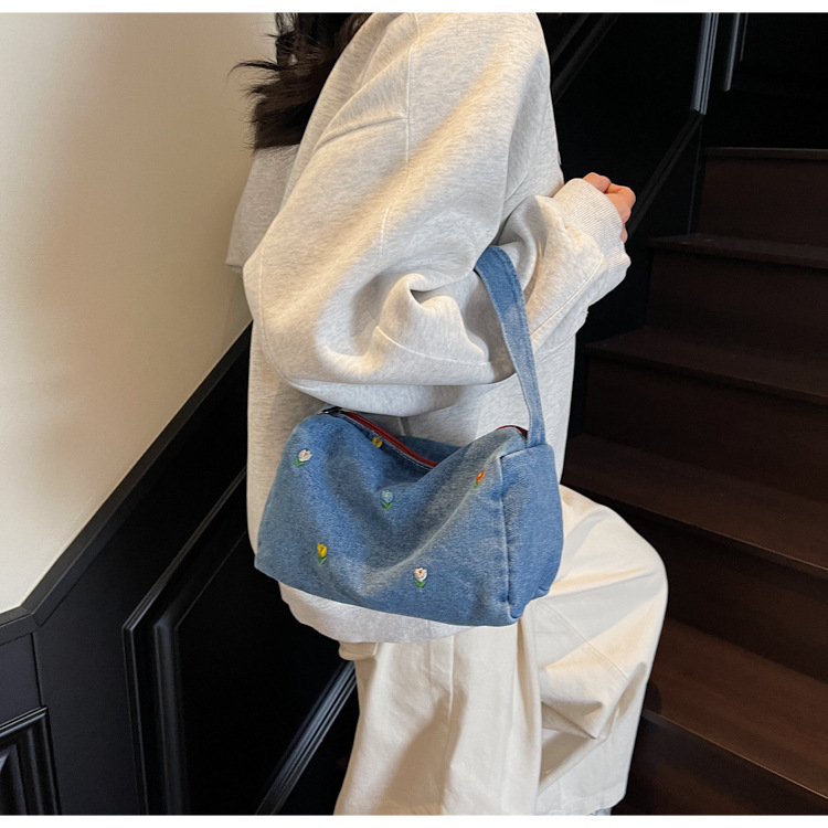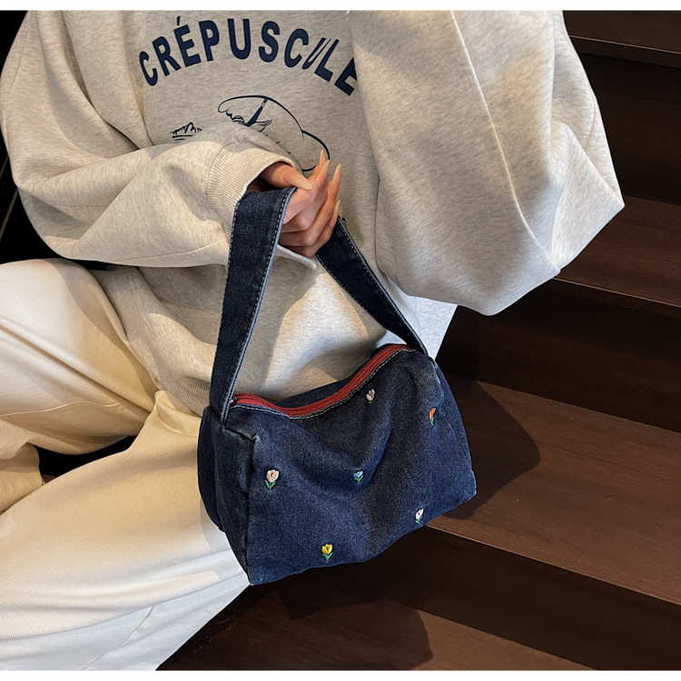 デニムの小さい方のカバンのかわいいプリント2025春の新型の軽い女性のカバンの刺繍の手提げのかわいいレジャーのカバン