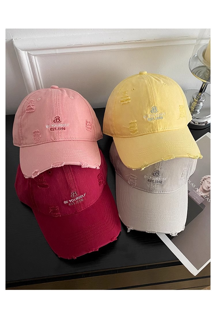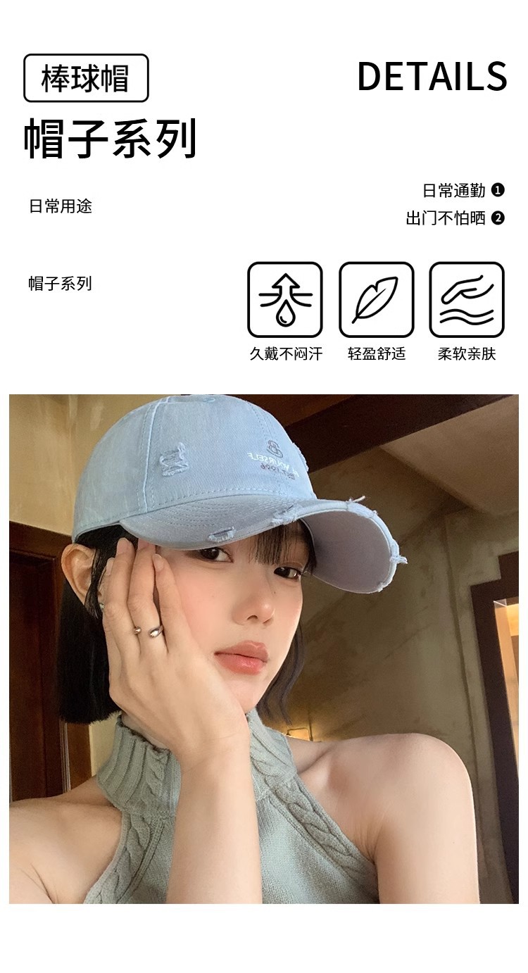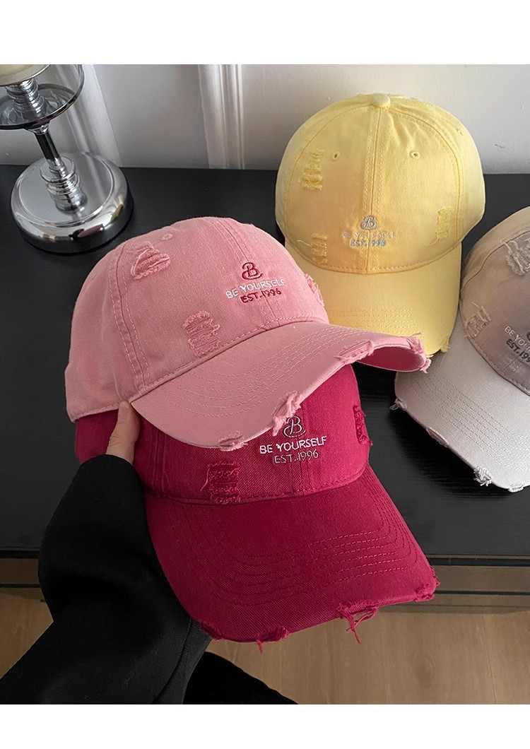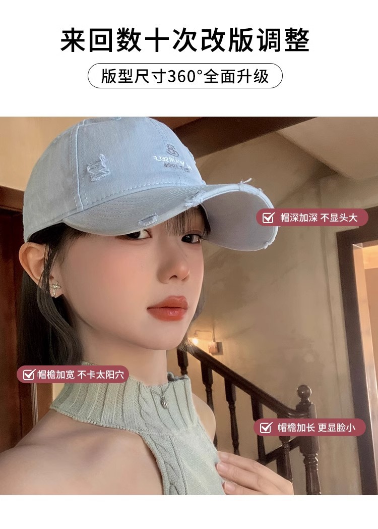 アメリカの水洗いは古い穴を割ったカウボーイ野球帽の女性レトロな潮牌鴨舌帽の広いつばに顔の小さな帽子が湿っている