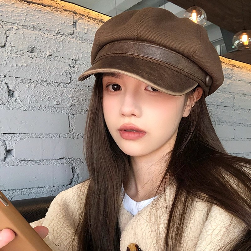皮檐做旧贝雷帽2025秋冬季美拉德画家新款复古八角帽报童帽显脸小