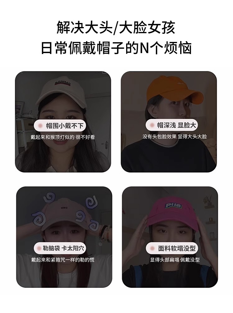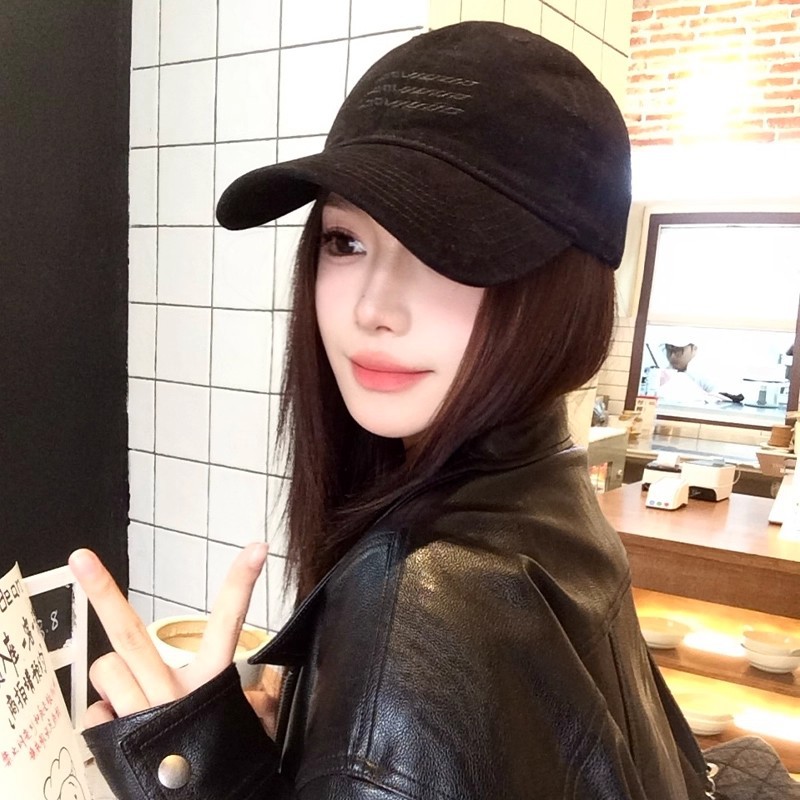 韩版刺绣黑色棒球帽女2025年秋新款百搭显脸小鸭舌帽大头围帽子潮