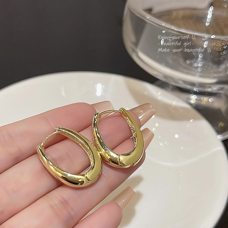 クロスボーダーヒット銅メッキ18kゴールドイヤリング高級感耳飾り女性幾何学的装飾品アクセサリー冷たい風耳掛け耳飾り