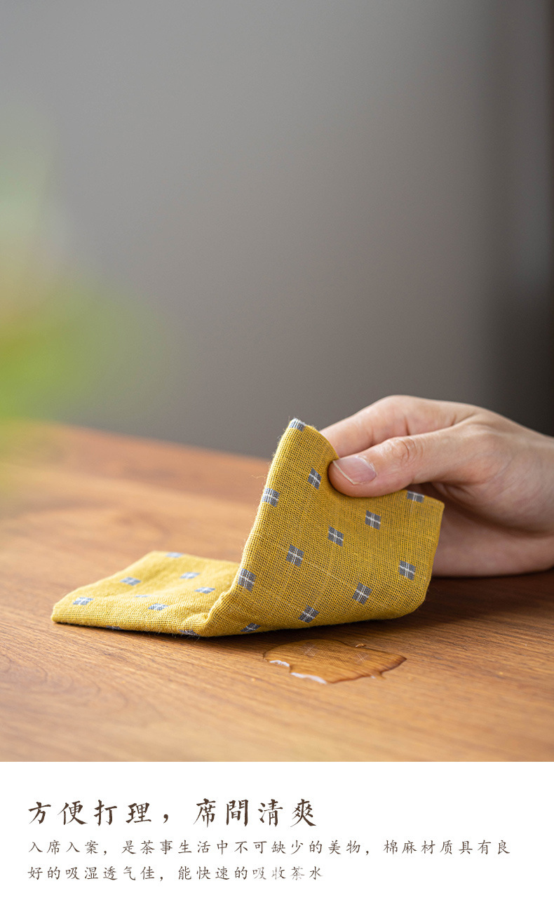 綿麻茶巾禅意方眼茶布養壺方巾小茶席吸水茶卓雑巾素雅茶マット茶タオル