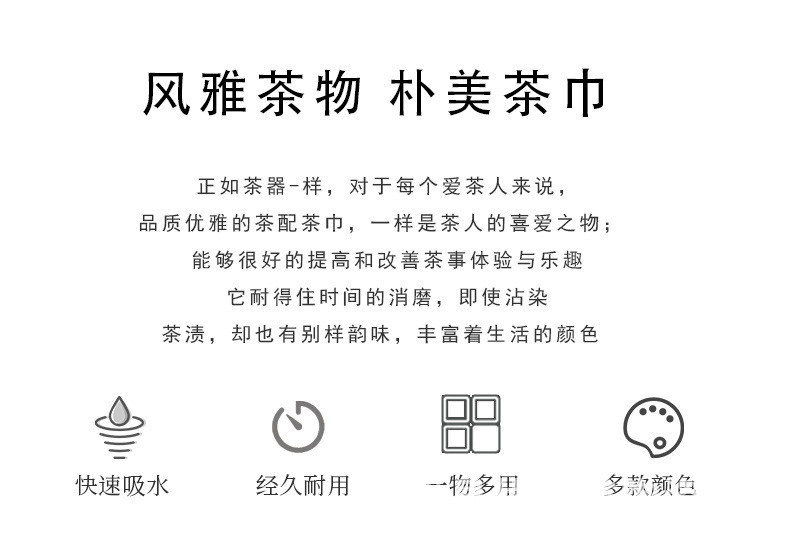 中国式吸水茶巾禅意茶席雑巾養壺巾茶具部品茶マット四角いタオルはテーブルの綿布を拭きます。