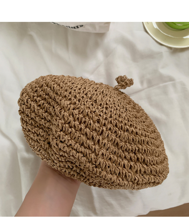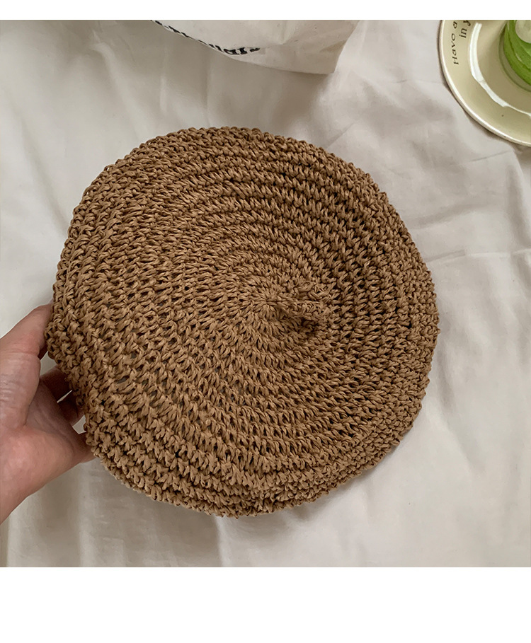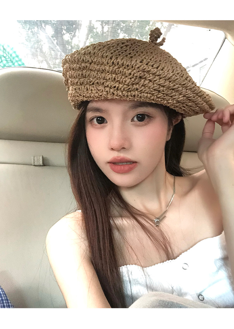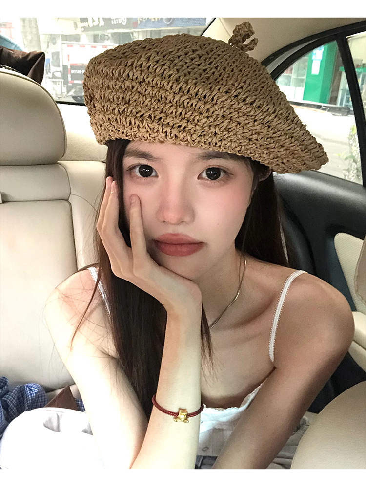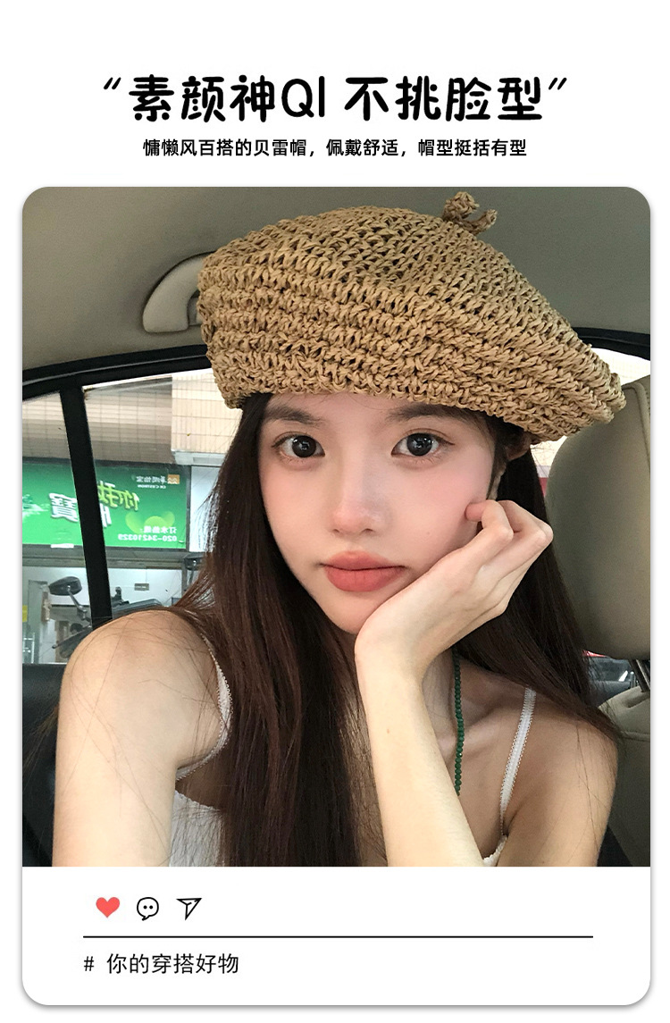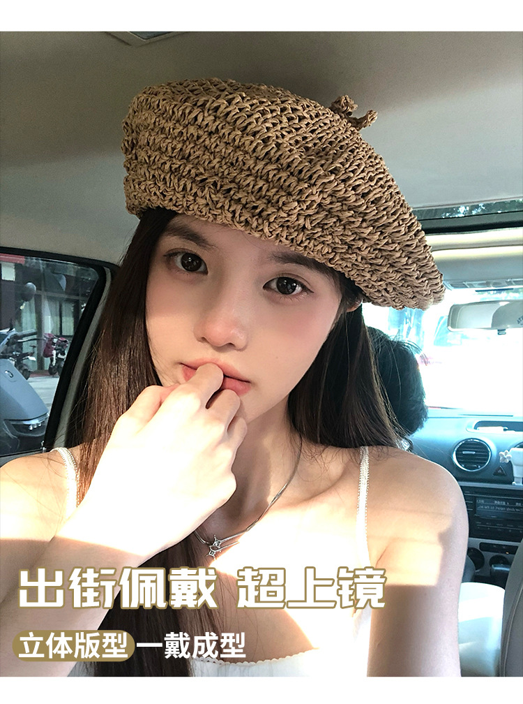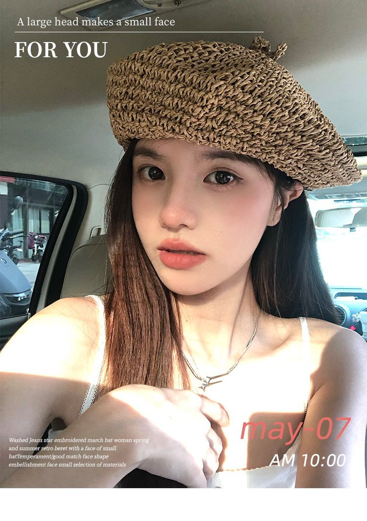 日本系のレトロな手作りのベレー帽の女性は夏に透かし彫りの大きい頭の周りに顔の小さい草を編んで画家の帽子を編みます。