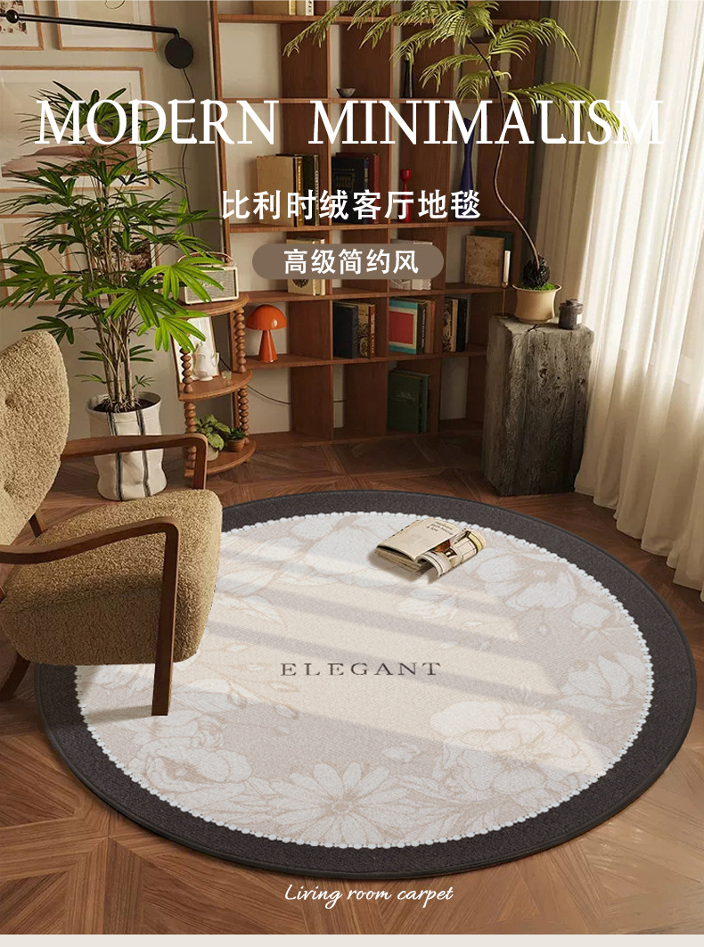 地毯客厅法式圆形家用易打理水晶绒地毯高级感卧室桌椅装饰地毯