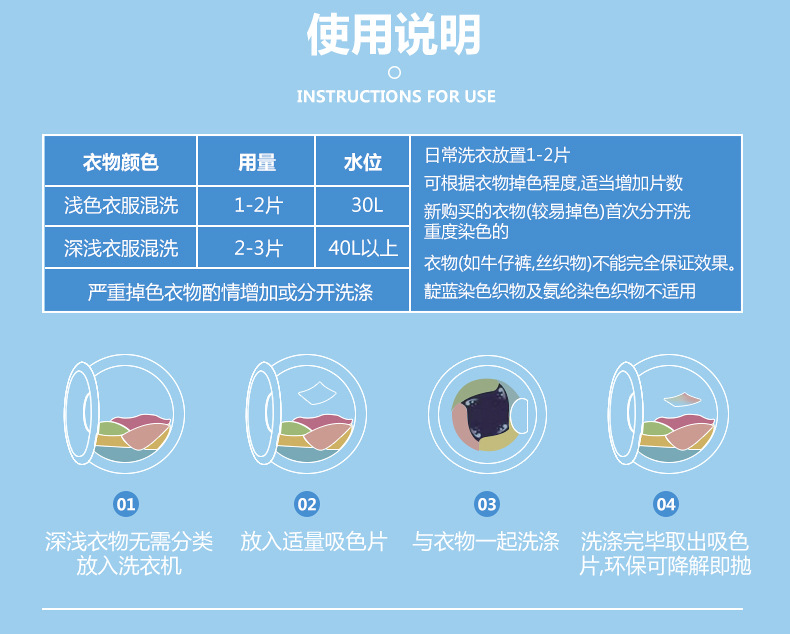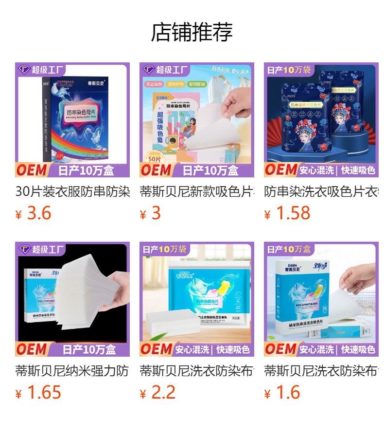 ティスベニ洗濯防染布色母片防串染吸色片洗濯機混洗防串色工場代発