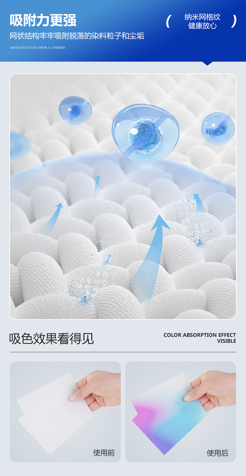 源工場洗濯防染布色母片防串染吸色片洗濯機混洗防串色吸色紙