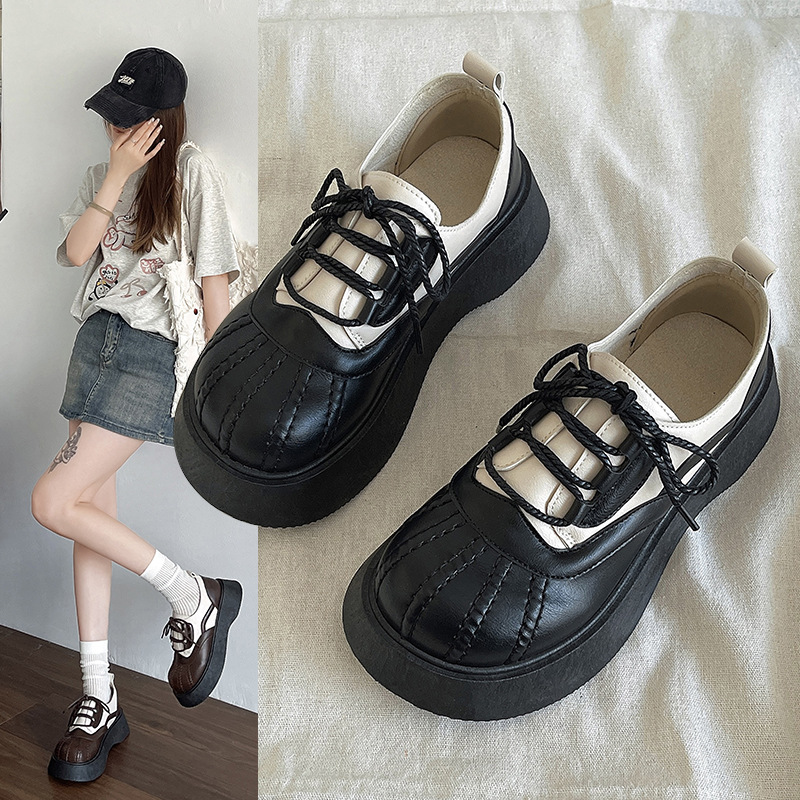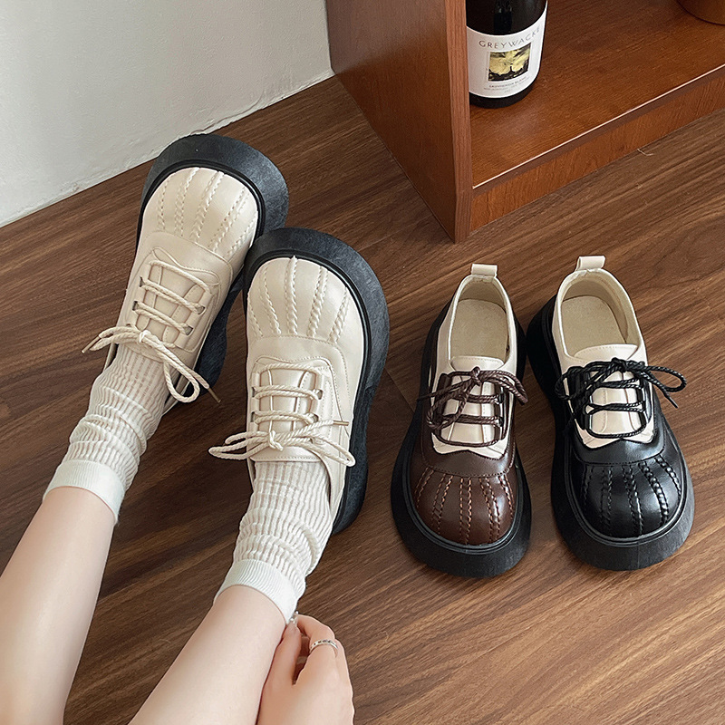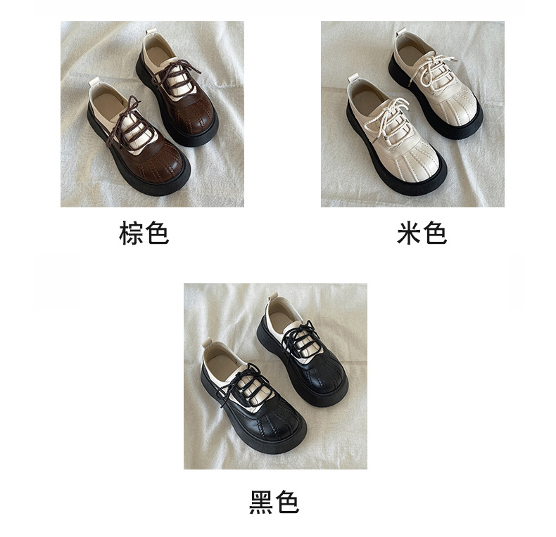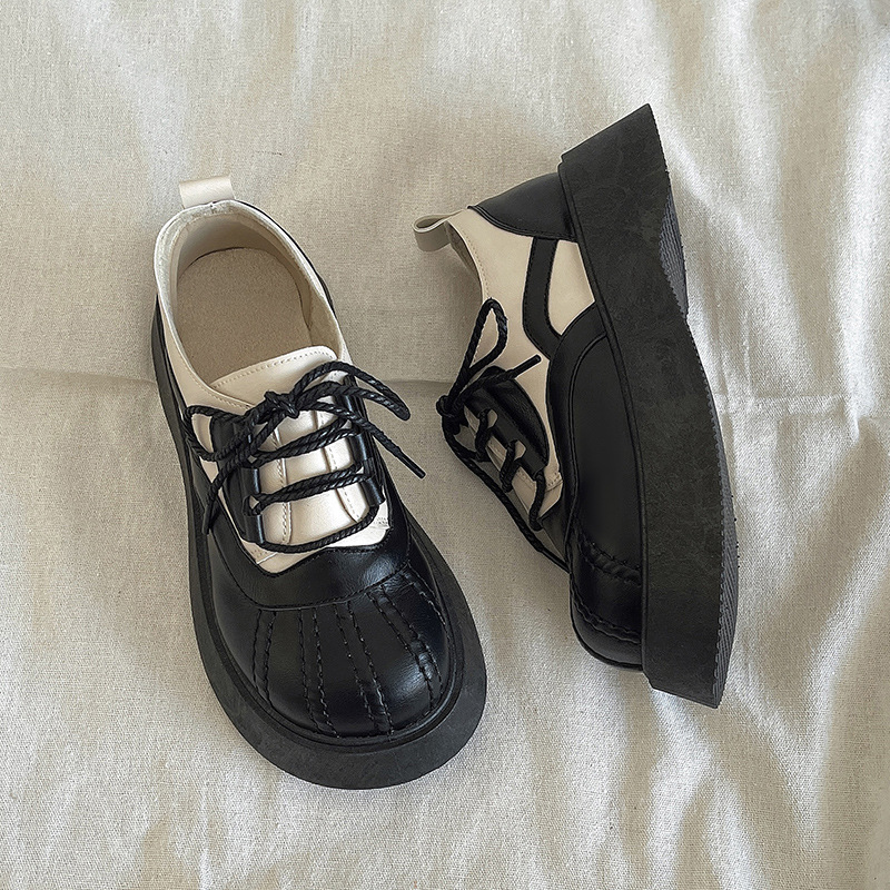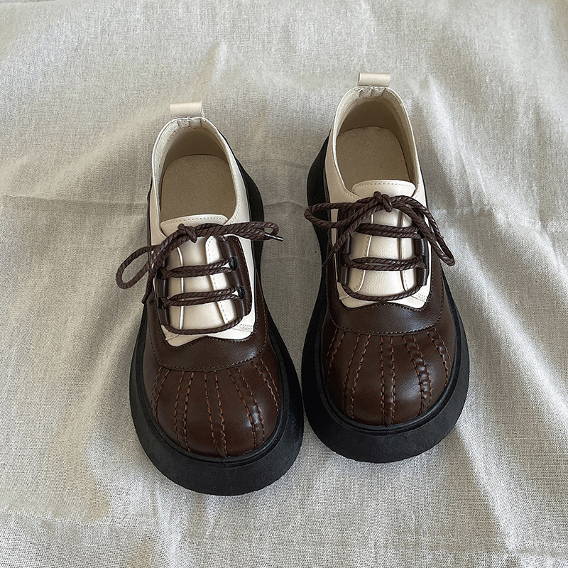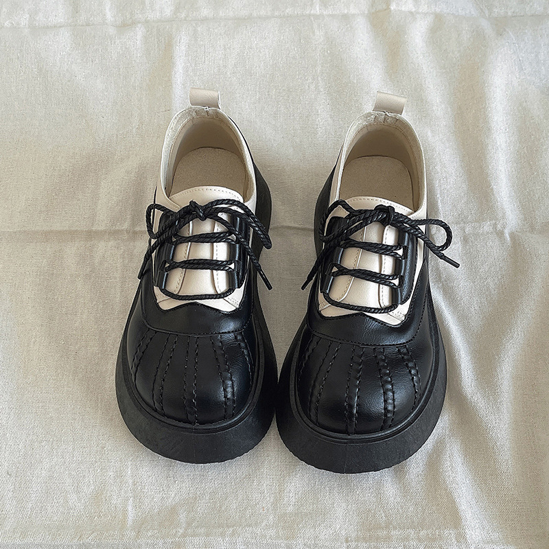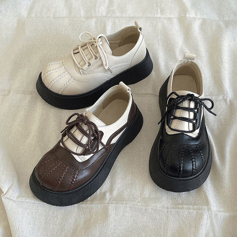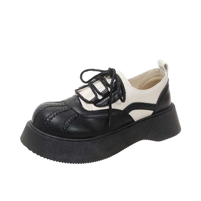 2025春の新型英倫風百合松餅の厚い底の靴の女性の復古の貝殻の頭は色のメアリー珍の小さい靴をつづり合わせます。