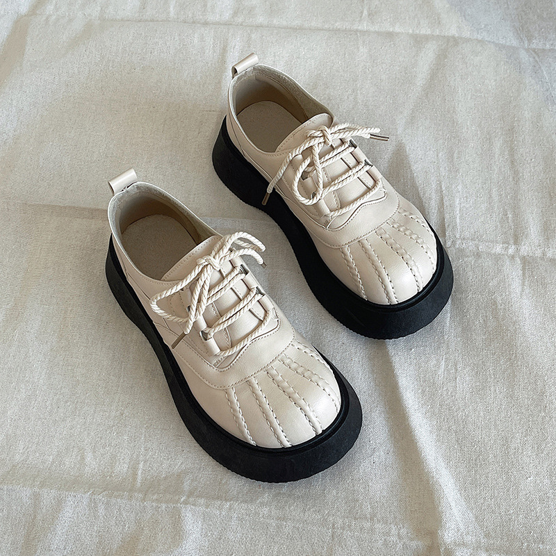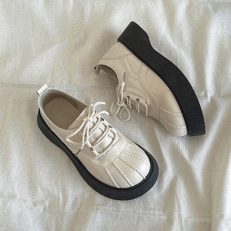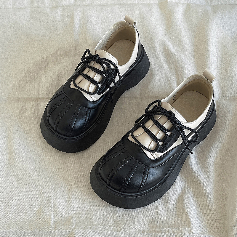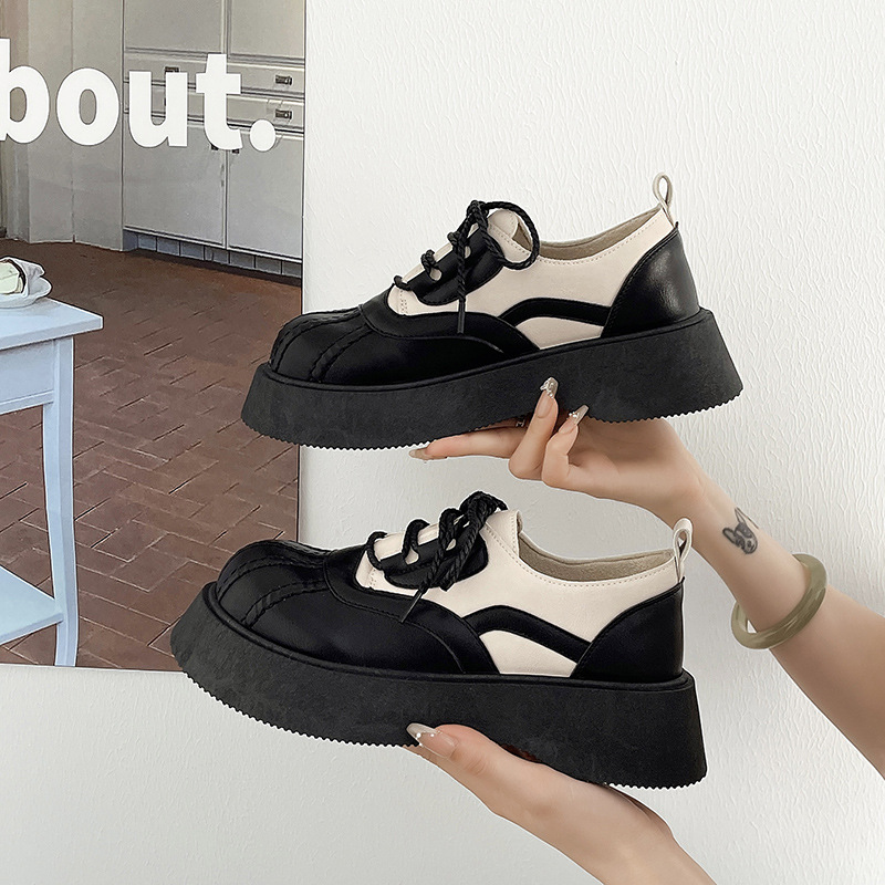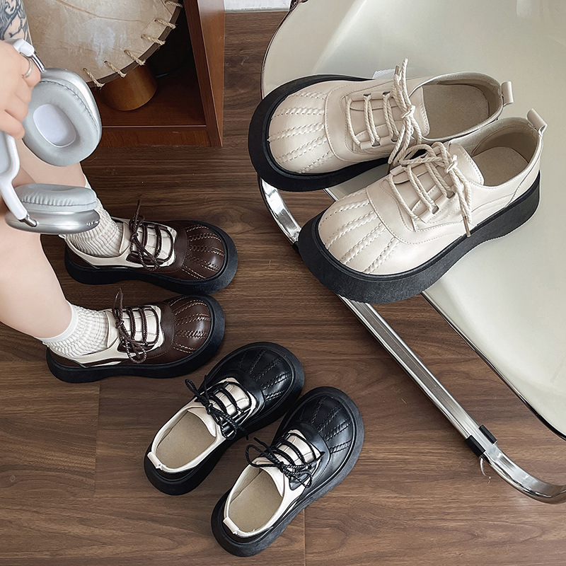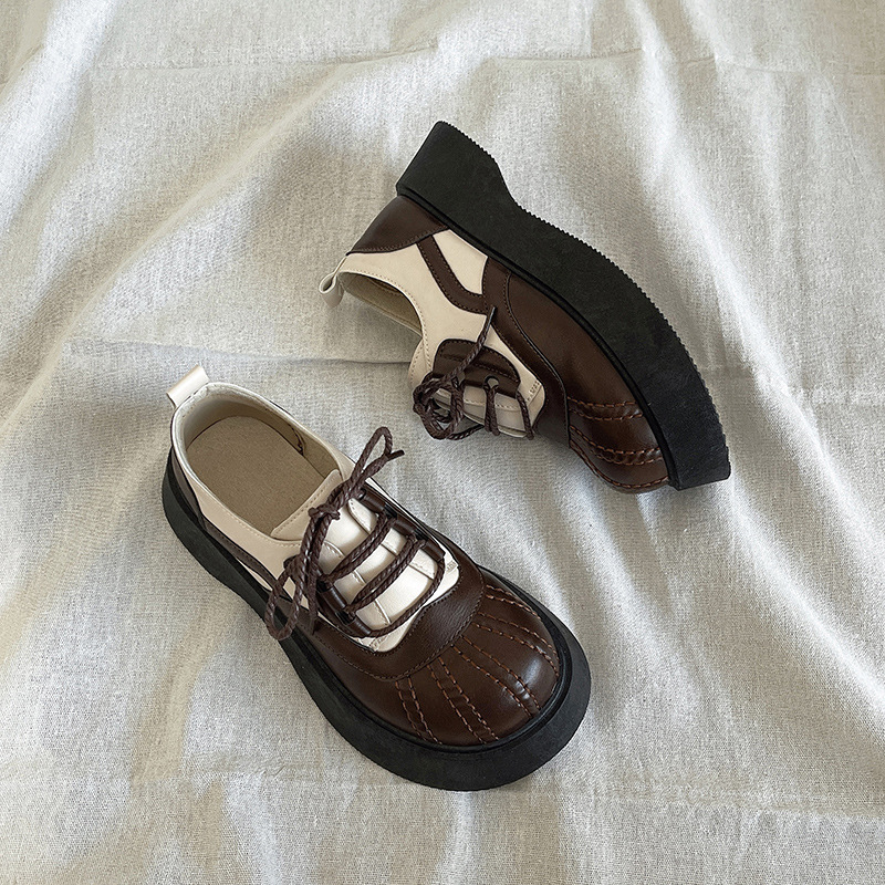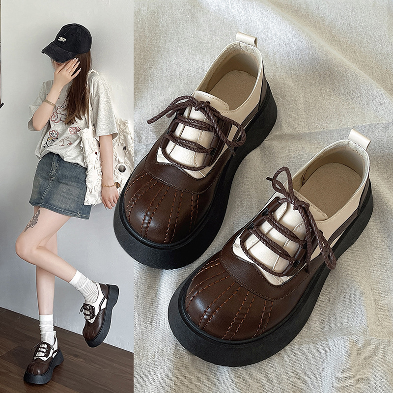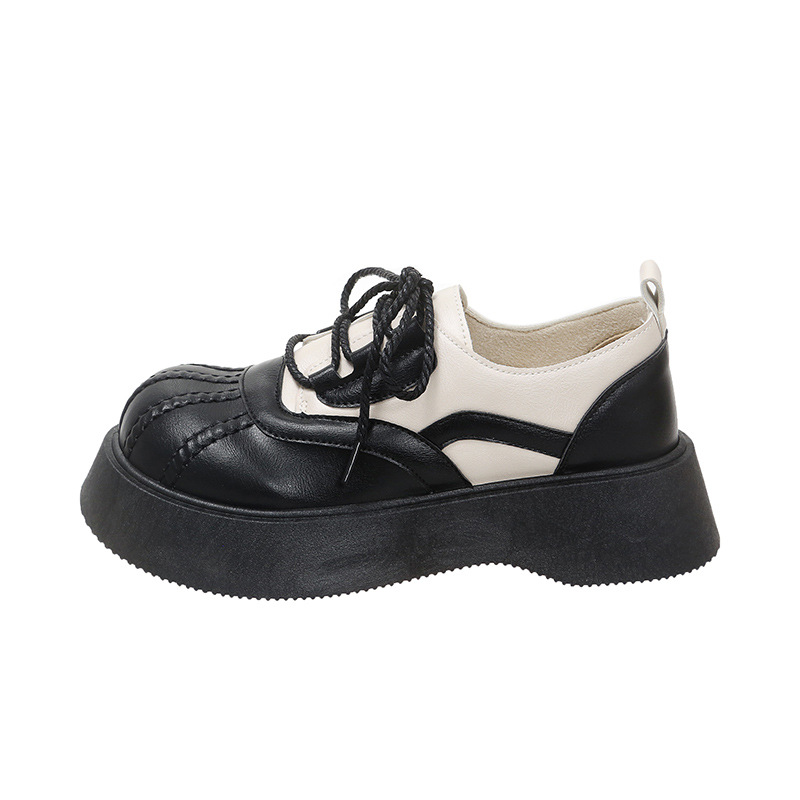 2025春の新型英倫風百合松餅の厚い底の靴の女性の復古の貝殻の頭は色のメアリー珍の小さい靴をつづり合わせます。