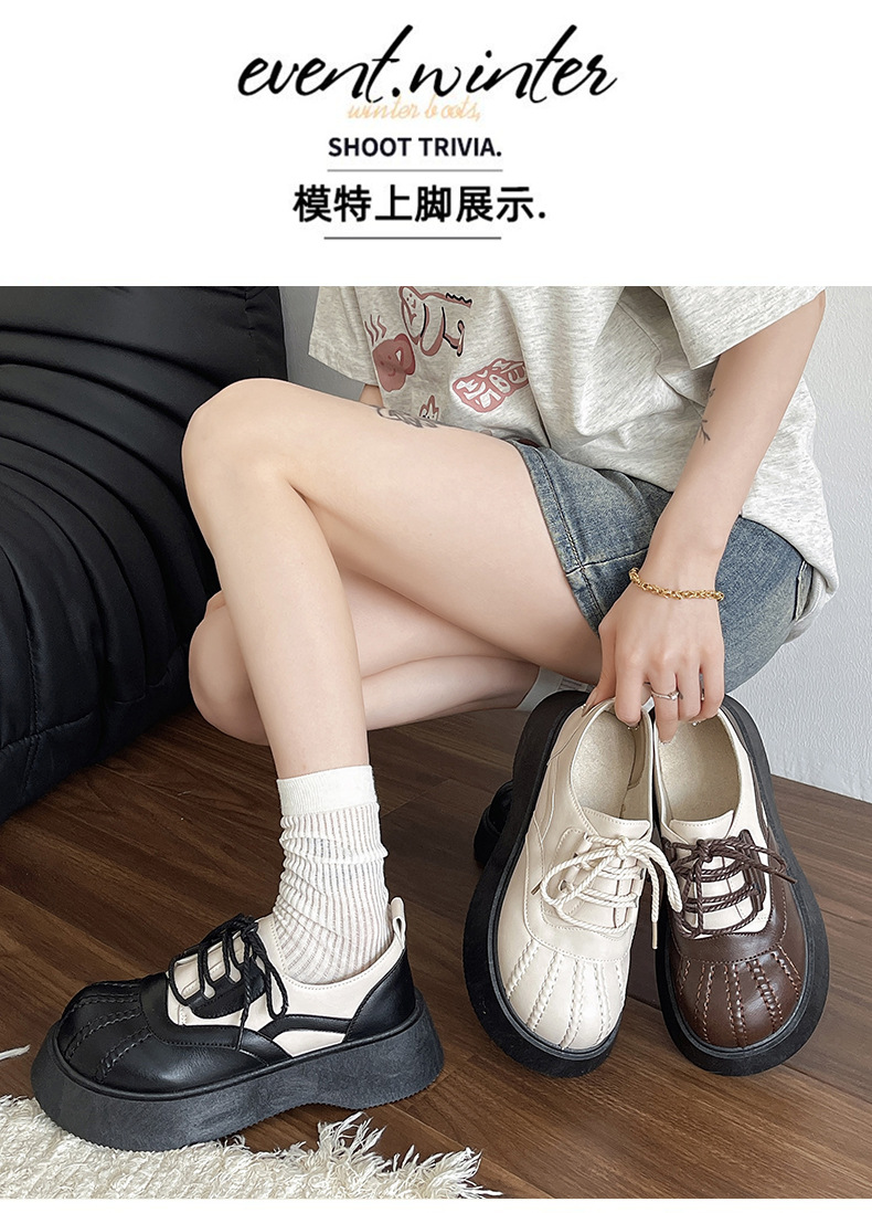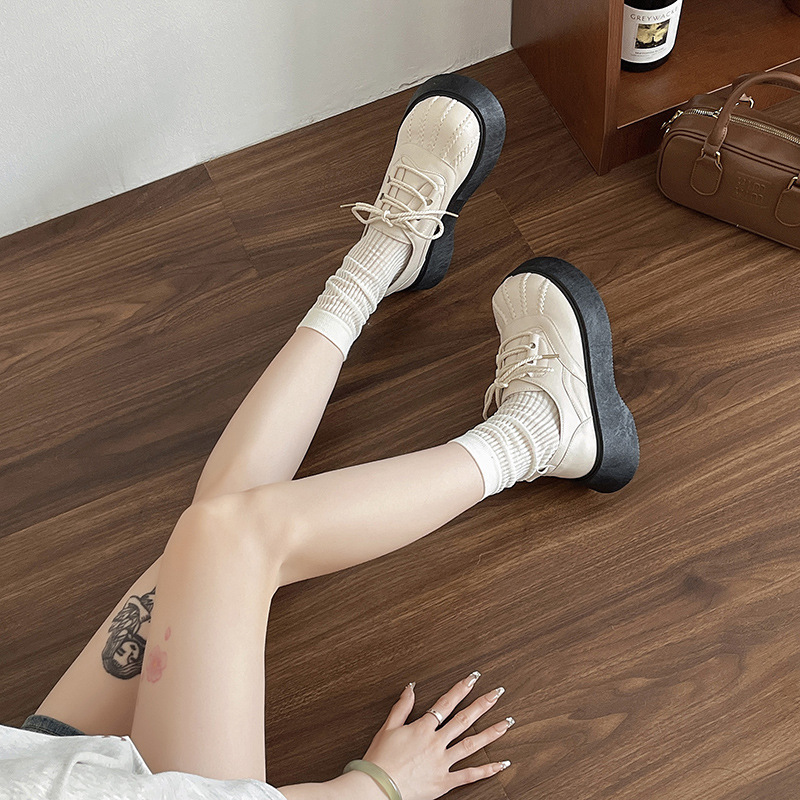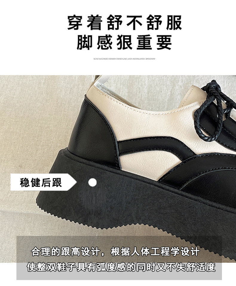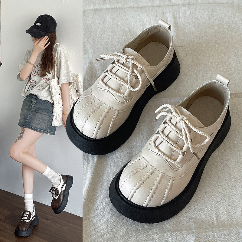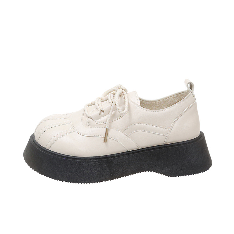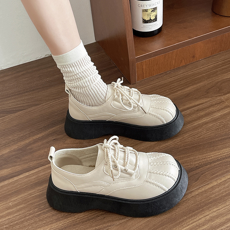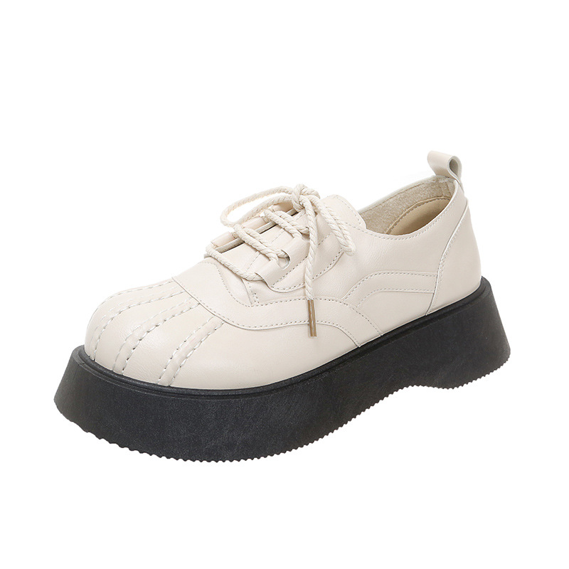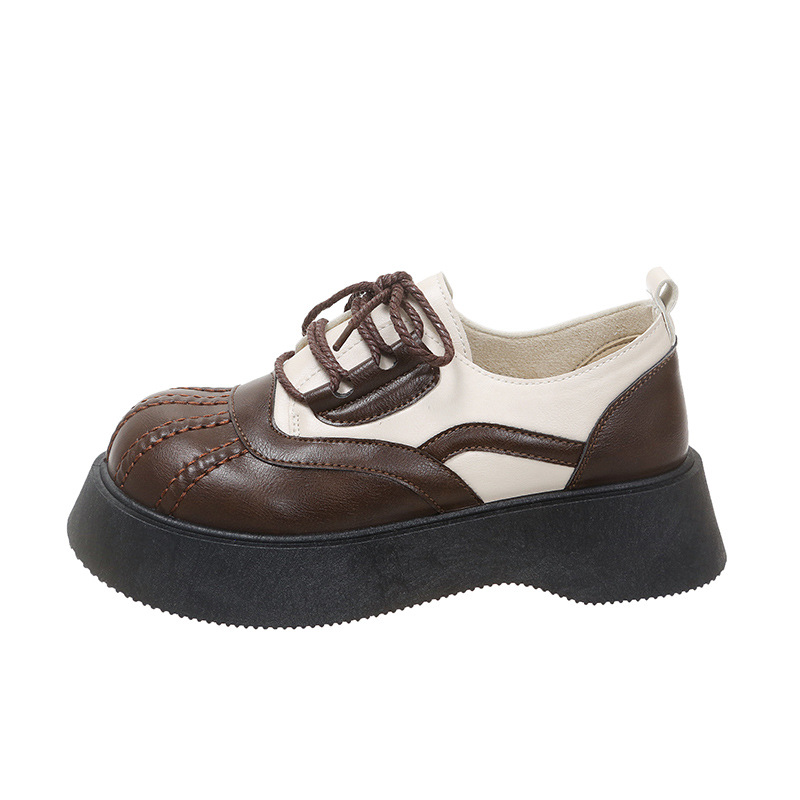 2025春の新型英倫風百合松餅の厚い底の靴の女性の復古の貝殻の頭は色のメアリー珍の小さい靴をつづり合わせます。