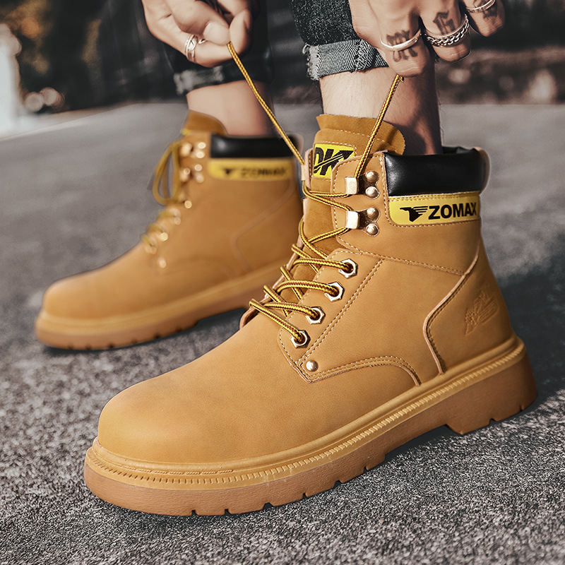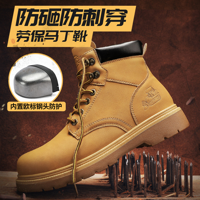 メーカー卸売り高助労働保険靴黄色牛筋底防刺靴防護靴男安全ブーツ鋼頭靴