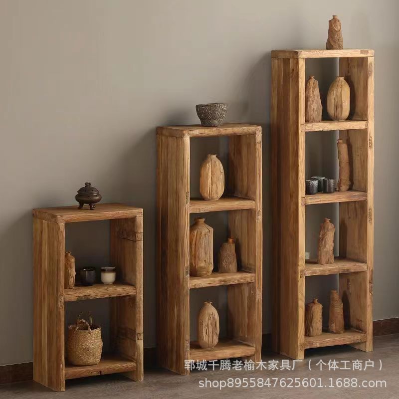 古い楡木置物架実木着地本棚模造古博古架老門板風楡木化収納棚