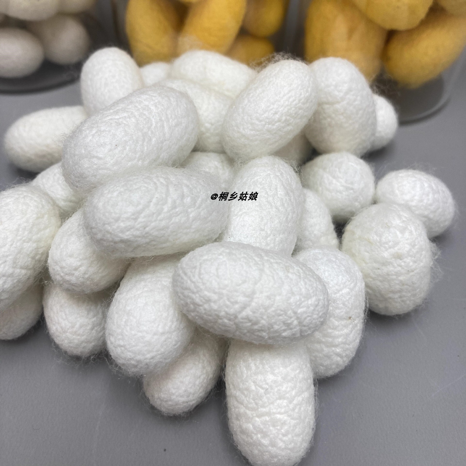 这款双宫桑蚕茧是纯天然的蚕茧直接烘干处理的,没有经过任何漂白处理,蚕茧上面稍微有点黄色的点这是正常的现象,而这些斑点在经过煮茧的时候都会烧掉的,不影响抽丝做成蚕丝兜的白度,而有些卖出来雪白没有任何污点的蚕茧可想而知了。