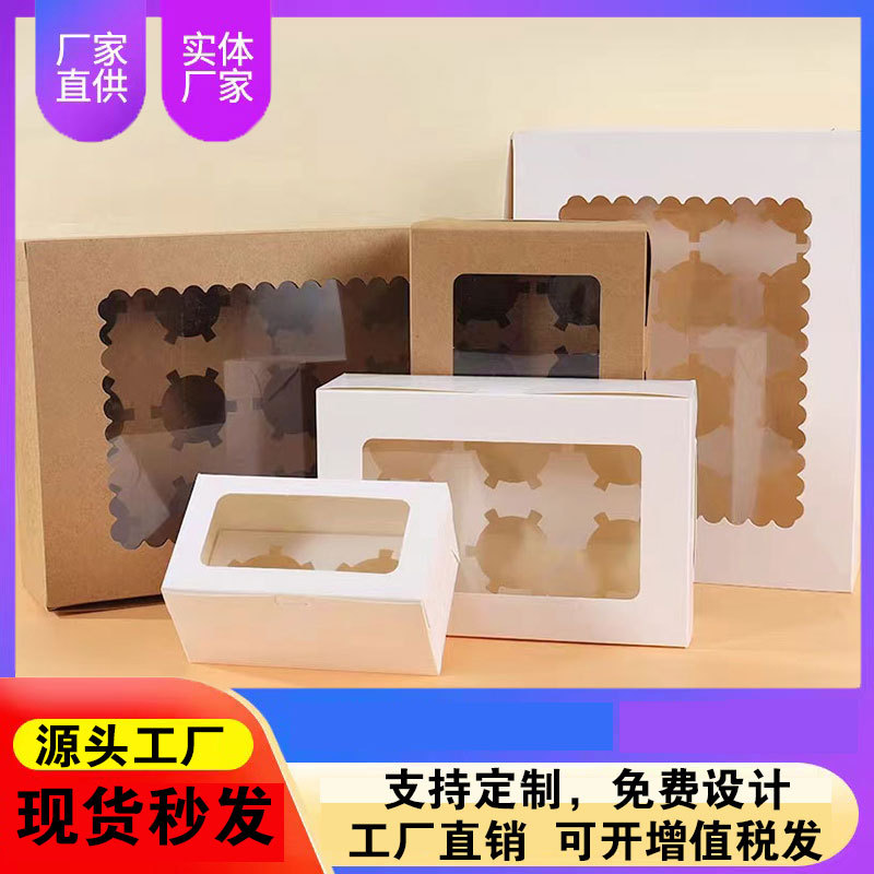 白いカードの窓の1/2/4/6/8/12粒の紙コップのケーキの包装箱のクラフト紙の馬芬のケーキの箱は内托に送ります。