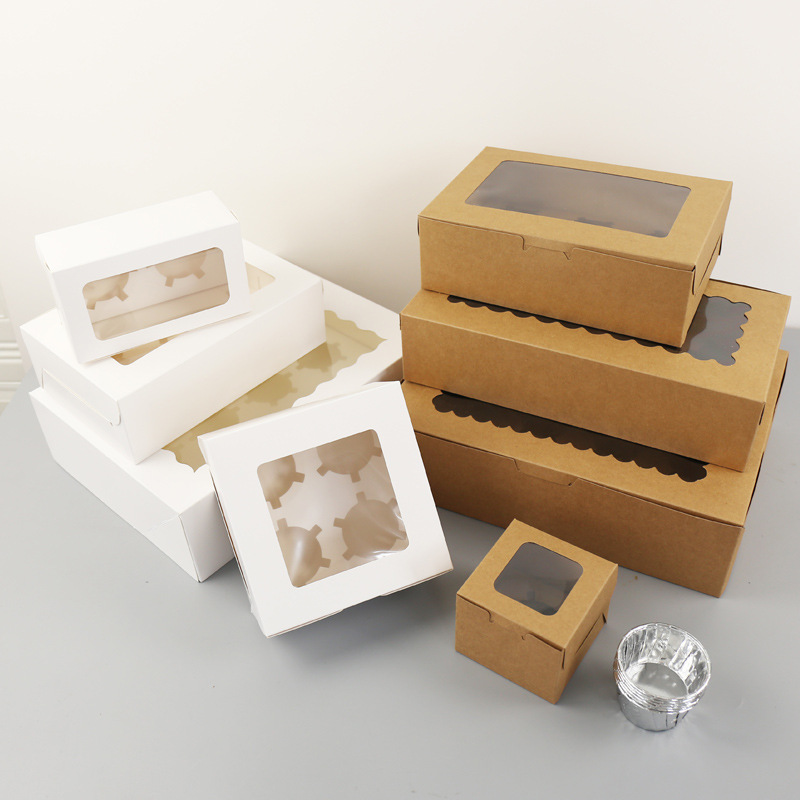 窓を開けたクラフト紙ケーキの包装箱の包装箱の馬芬杯の色箱の現物はカスタマイズできます。