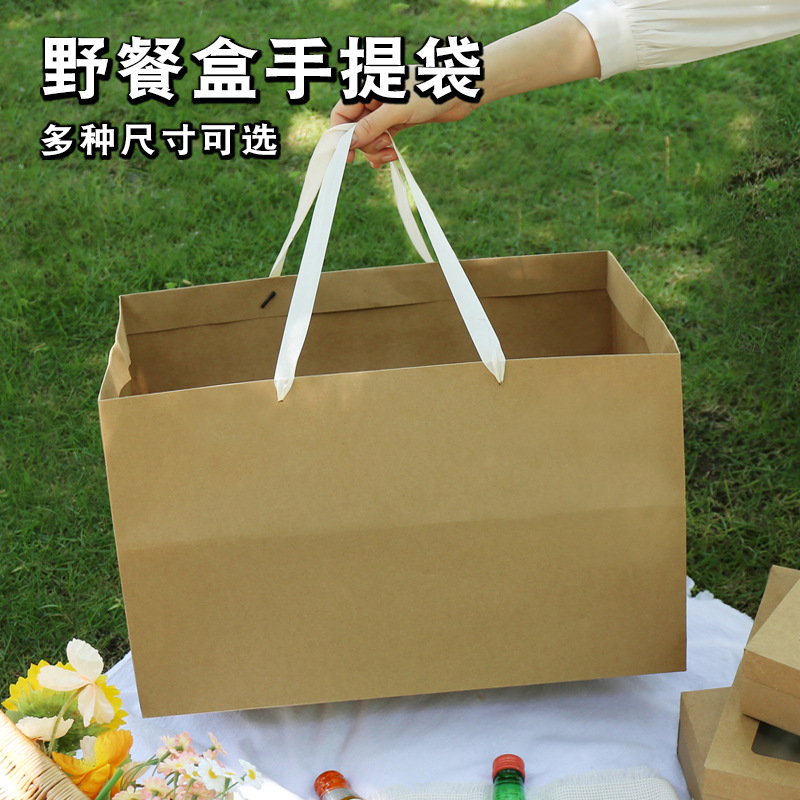 ピクニックボックスクラフト紙ハンドバッグギフトバッグテイクアウト包装ケータリングベーキング商業包装袋大容量増粘
