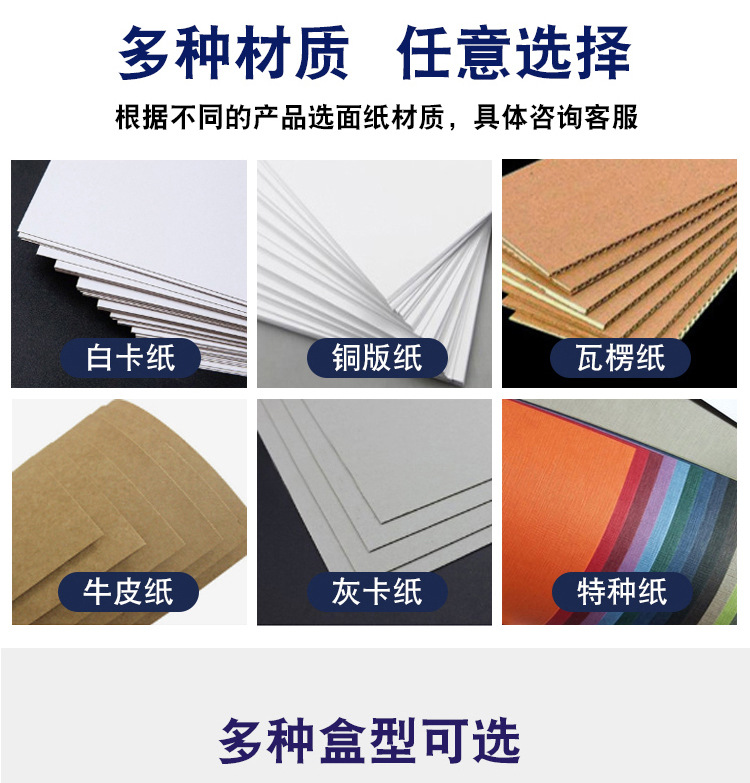 仕様と型式 白いボール紙; サンプル,段ボール紙;サンプル,クラフト紙; サンプル,特殊紙; サンプル,グレーのボール紙; サンプル,銅紙; サンプル,より多くの材料;サンプル