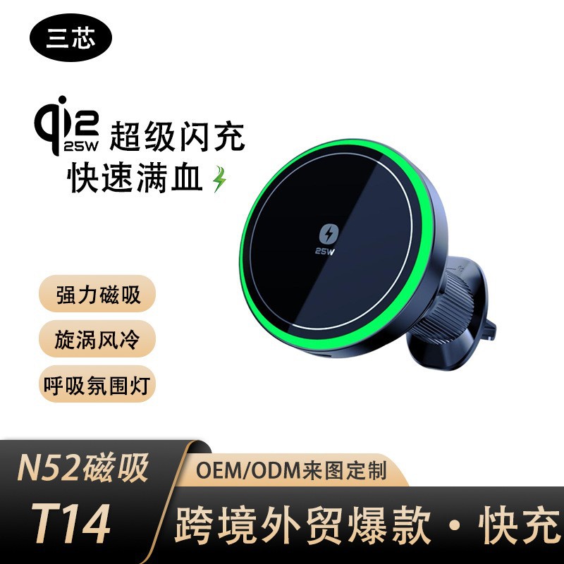 跨境车内磁吸车载无线手机magsafe汽车支架快充充厂家直销磁吸