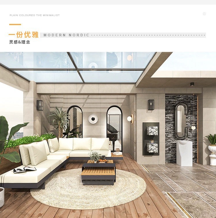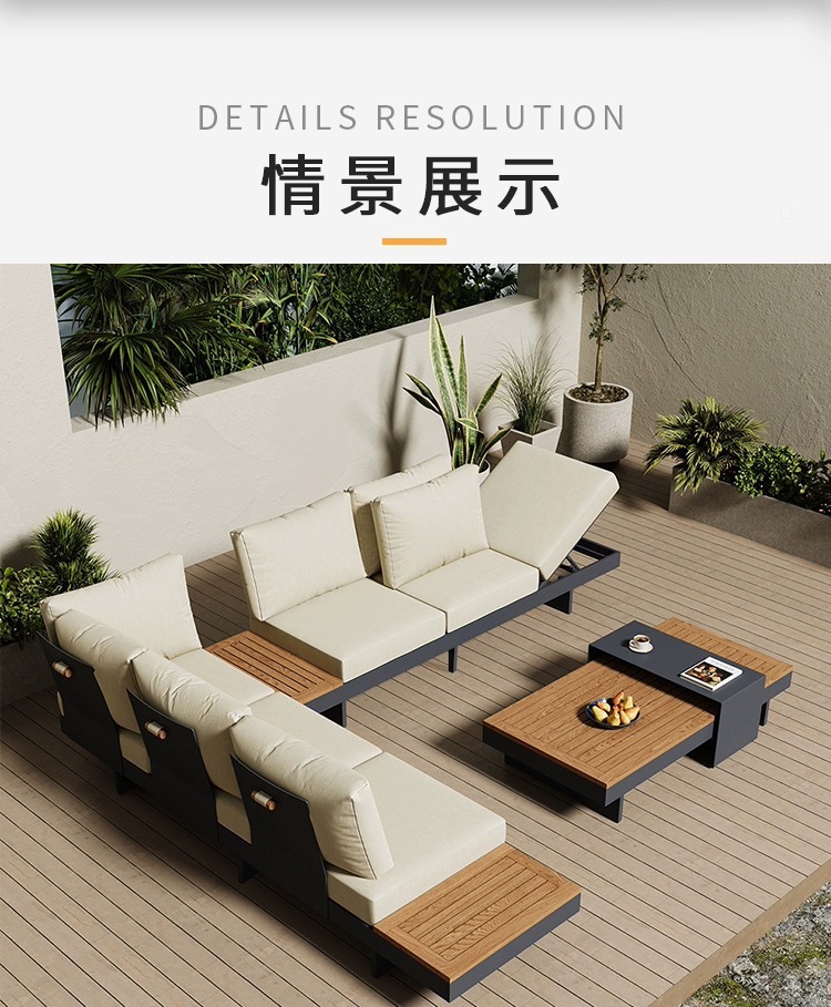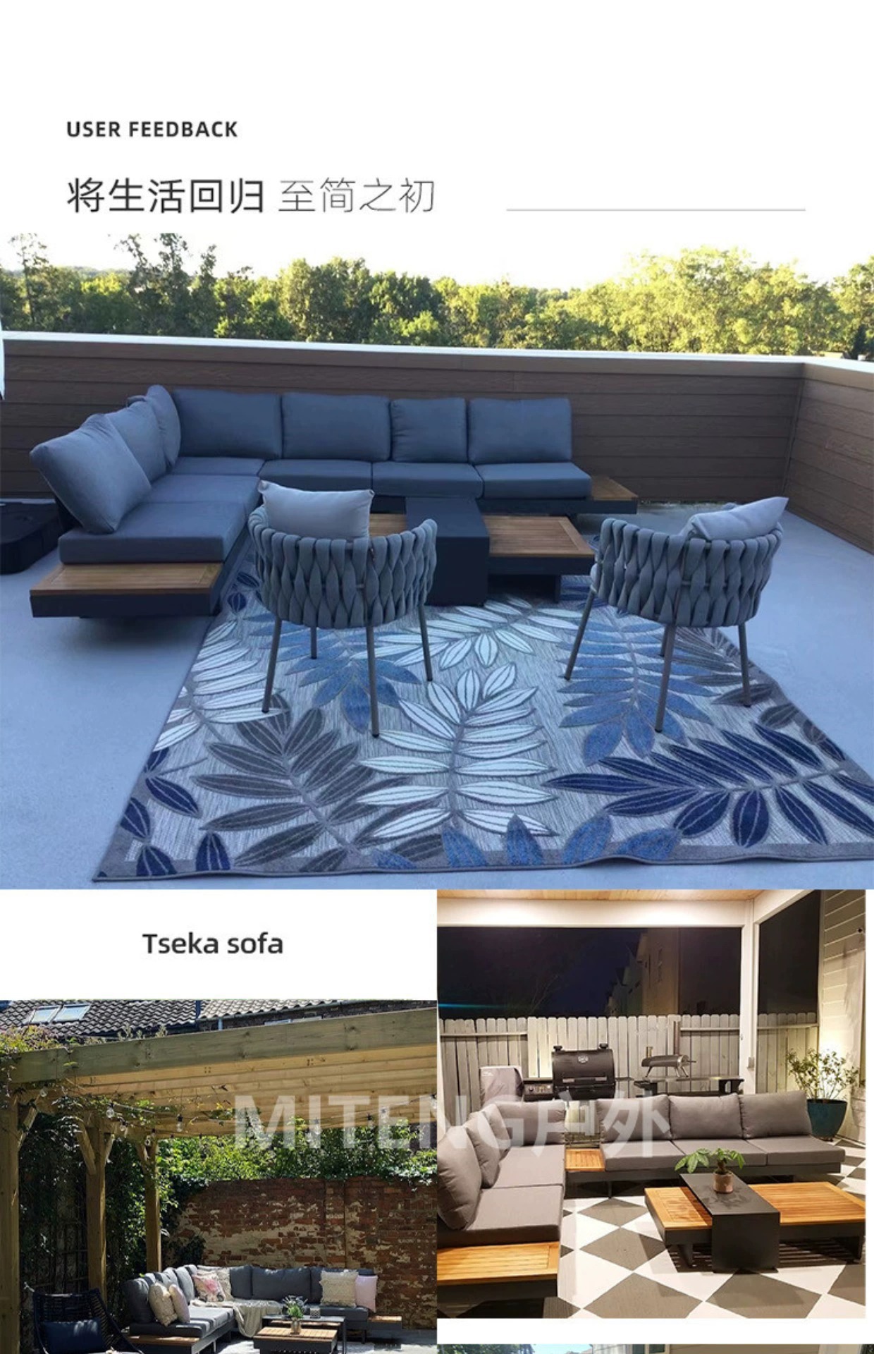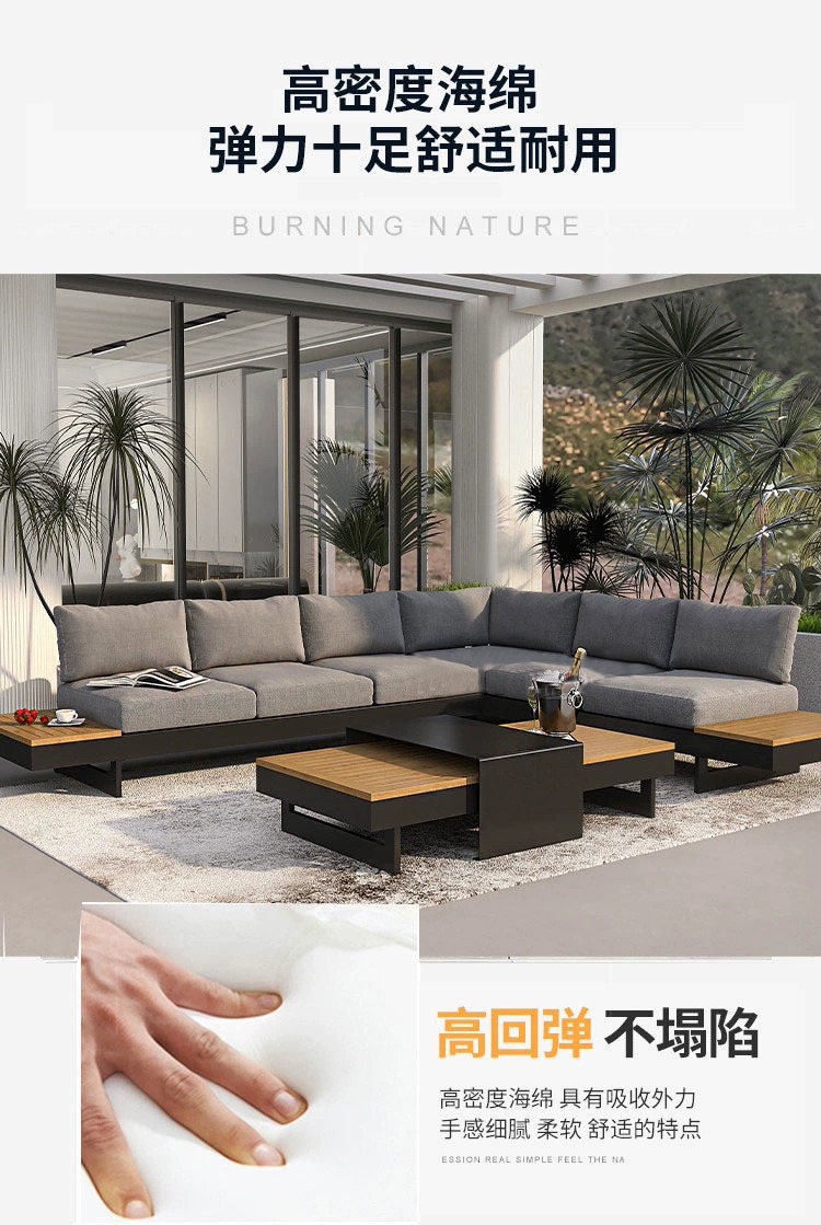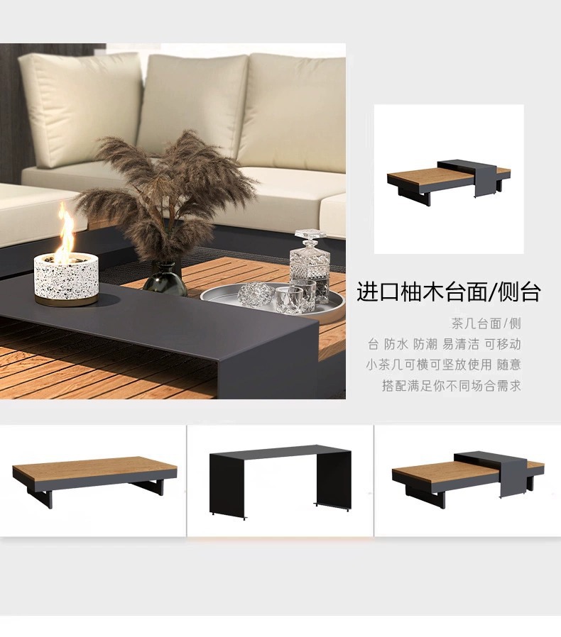 屋外ソファー庭園アルミニウム合金防雨日焼け止め別荘ホテル露天ベランダ柚木ソファー椅子組み合わせ家具