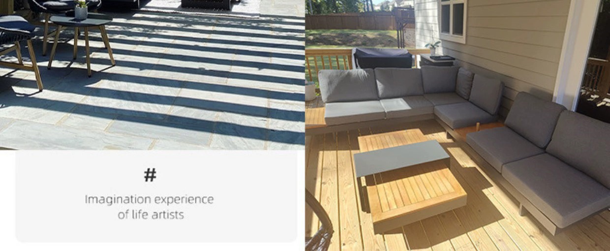 屋外ソファ中庭プールレジャー屋外ヴィラチークリクライニングチェアコーヒーテーブルバルコニーパティオホテルガーデン家具
