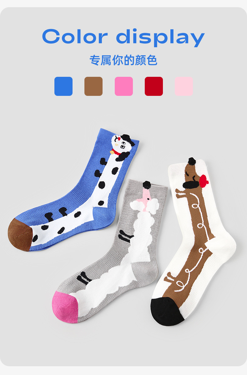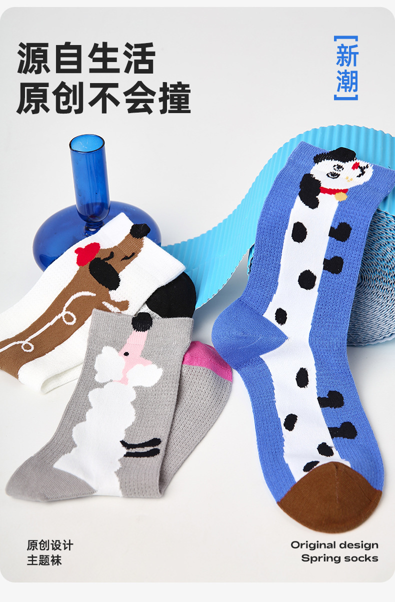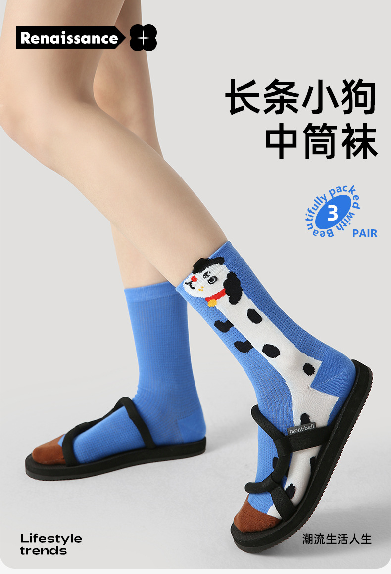 Renaissance袜子女秋冬2025新款精梳棉撞色卡通小狗无骨中筒女袜