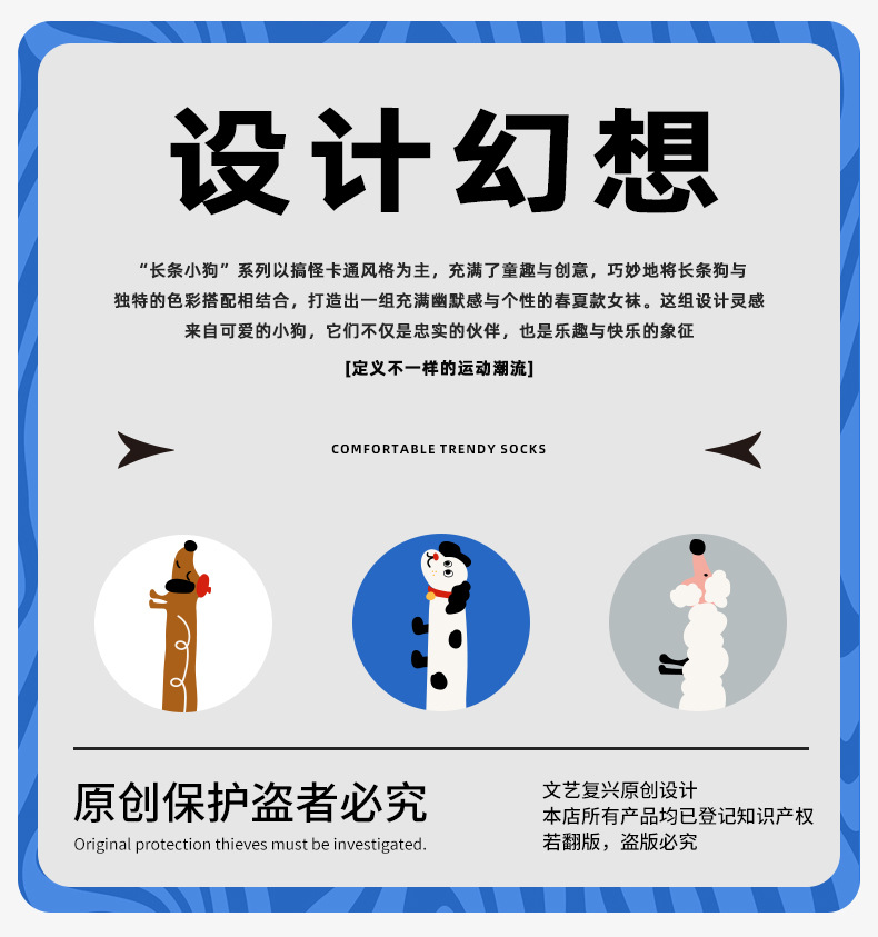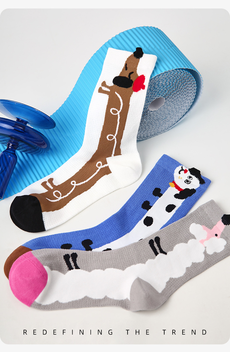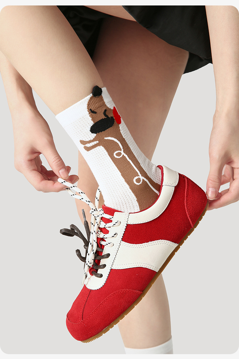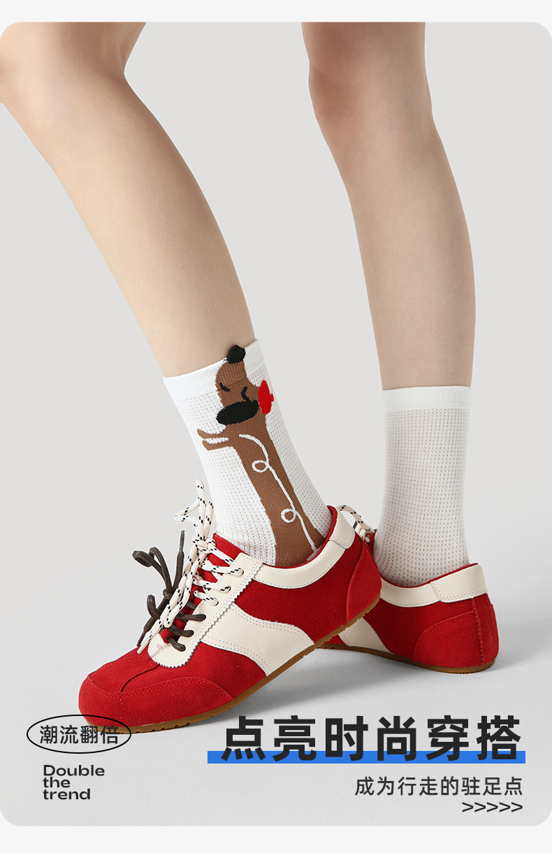 Renaissance袜子女秋冬2025新款精梳棉撞色卡通小狗无骨中筒女袜