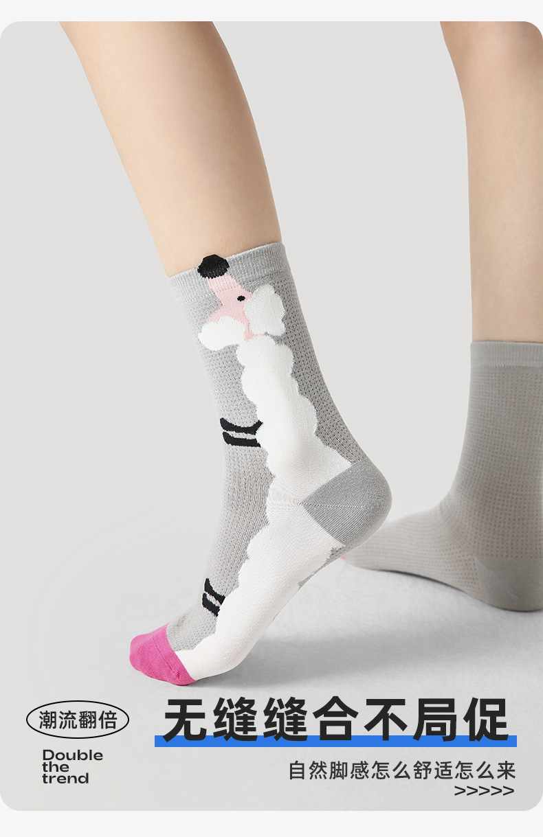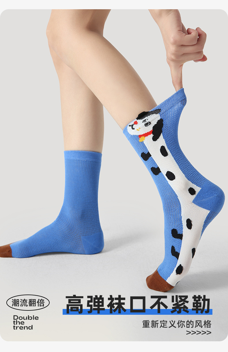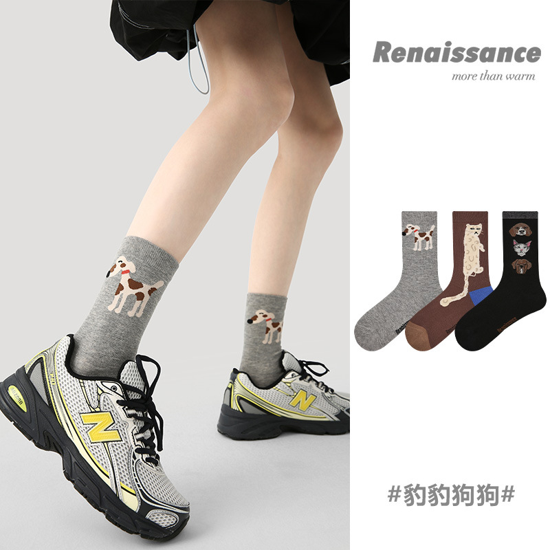Renaissance袜子女ins潮秋冬新款精梳棉卡通动物条纹无骨中筒女袜