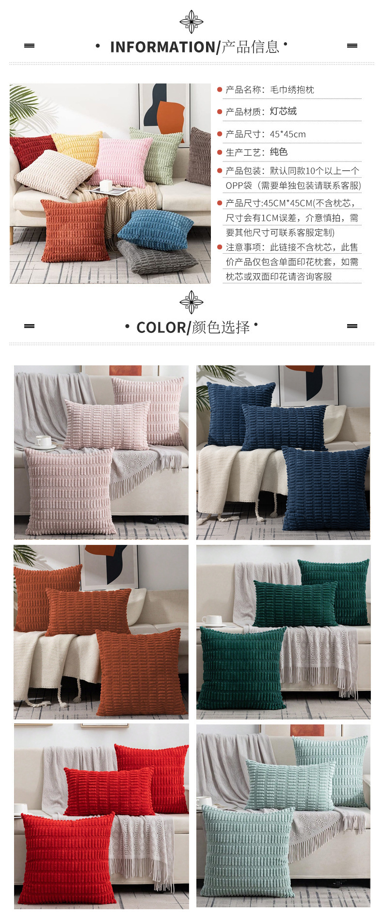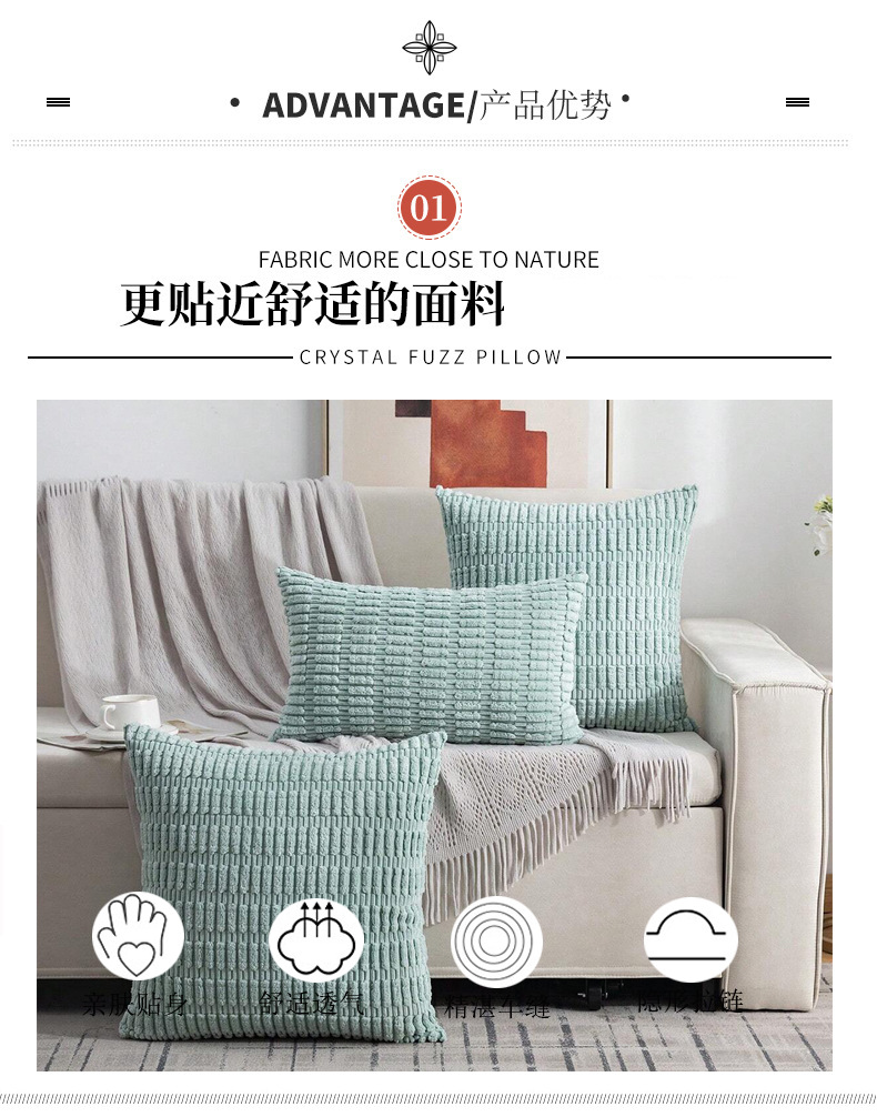 跨境亚马逊ins毛绒抱枕套客厅多颜色高级感灯芯绒沙发靠垫套批发