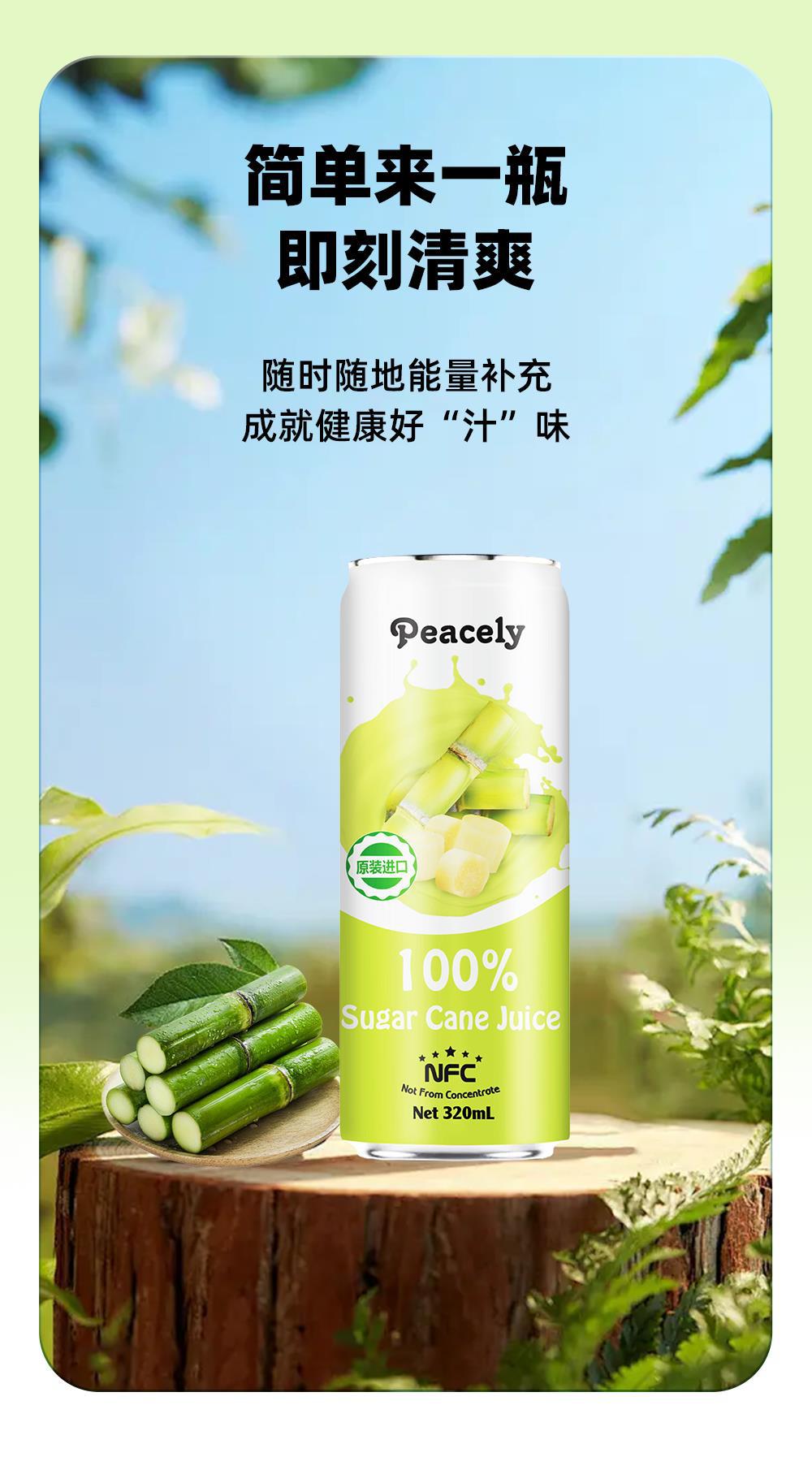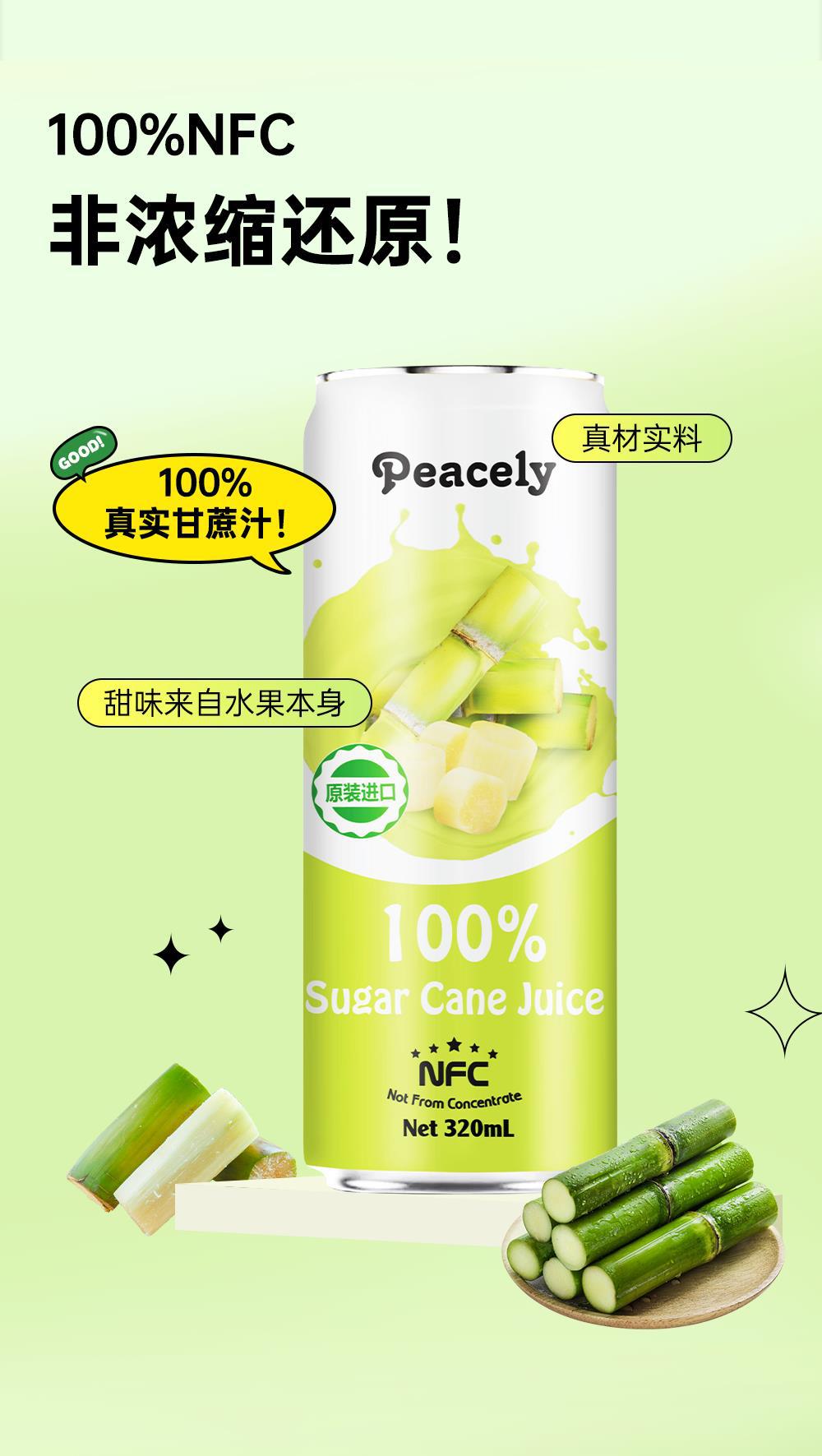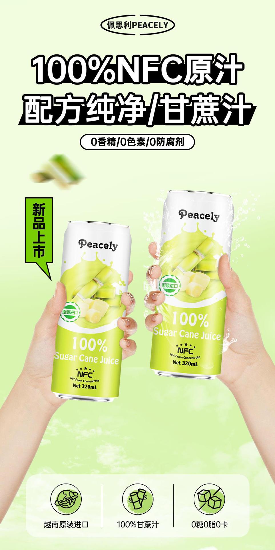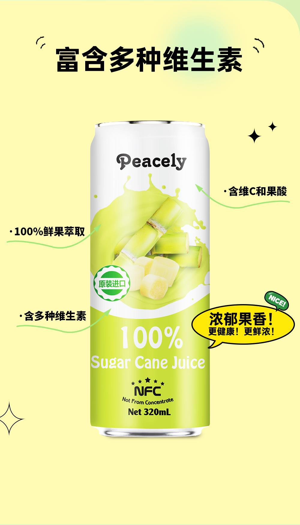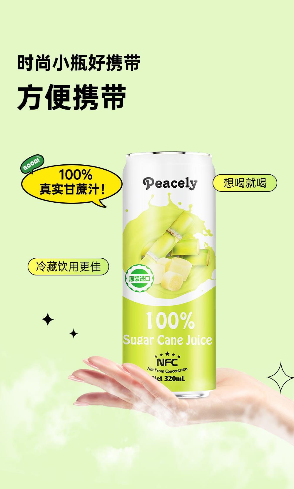 Peacelyペイズリーベトナム輸入NFCサトウキビジュース100% ジュース甘味爽やかな夏の飲み放題320ml
