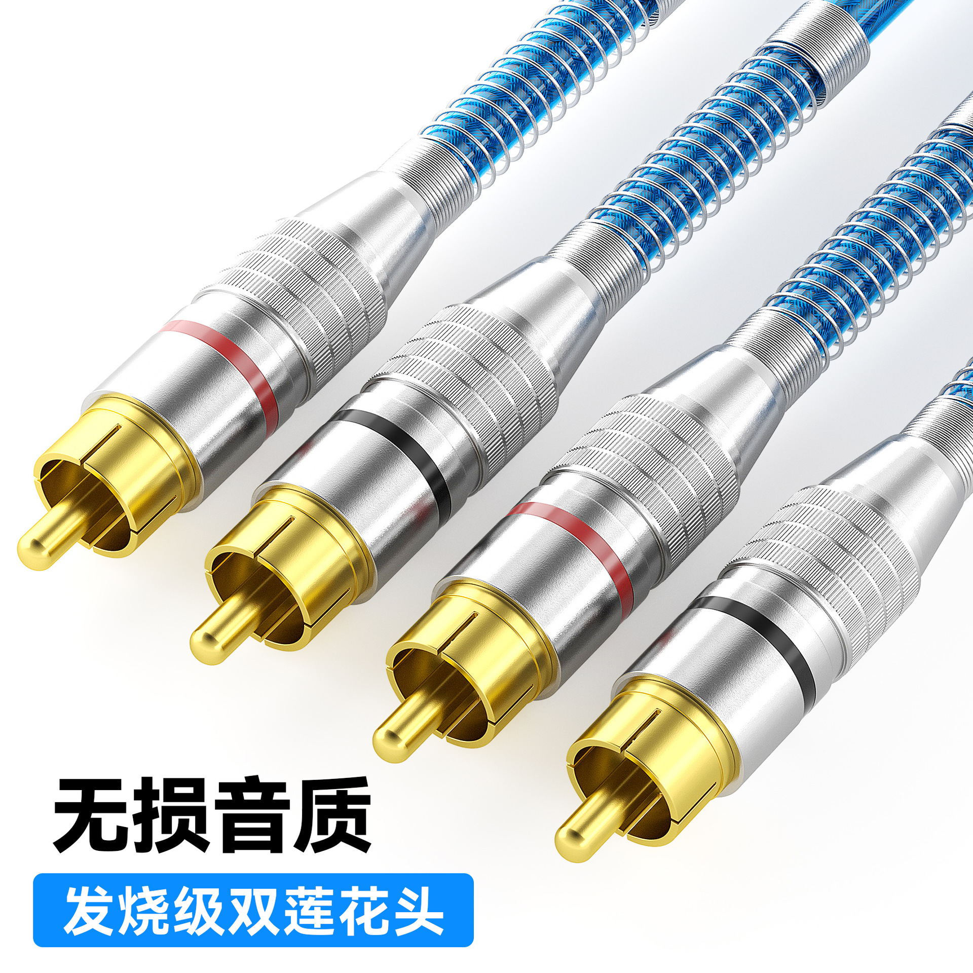 厂家直销 2RCA对2RCA 透明编织线 一母两公 Y线 音频装配线 功放低音炮