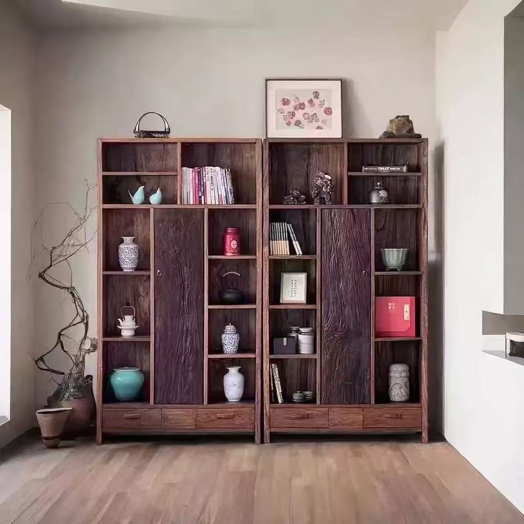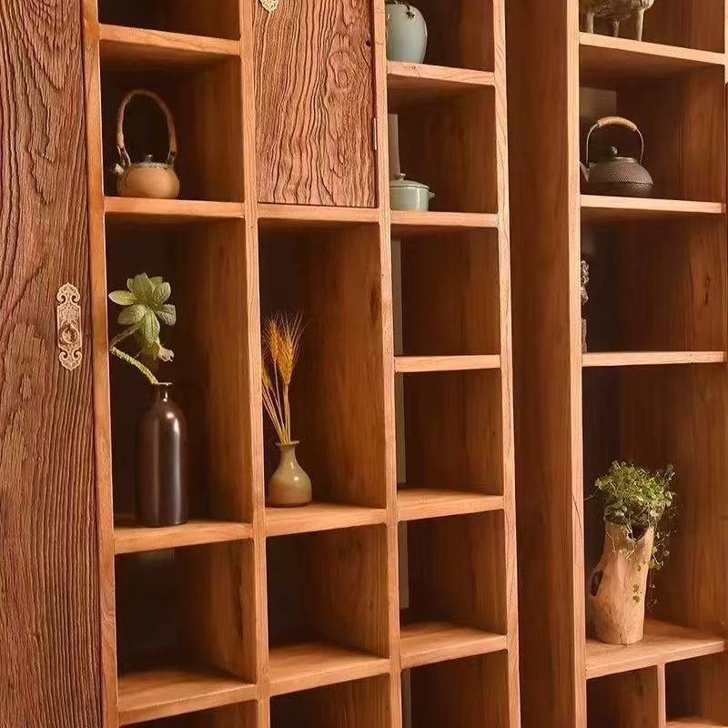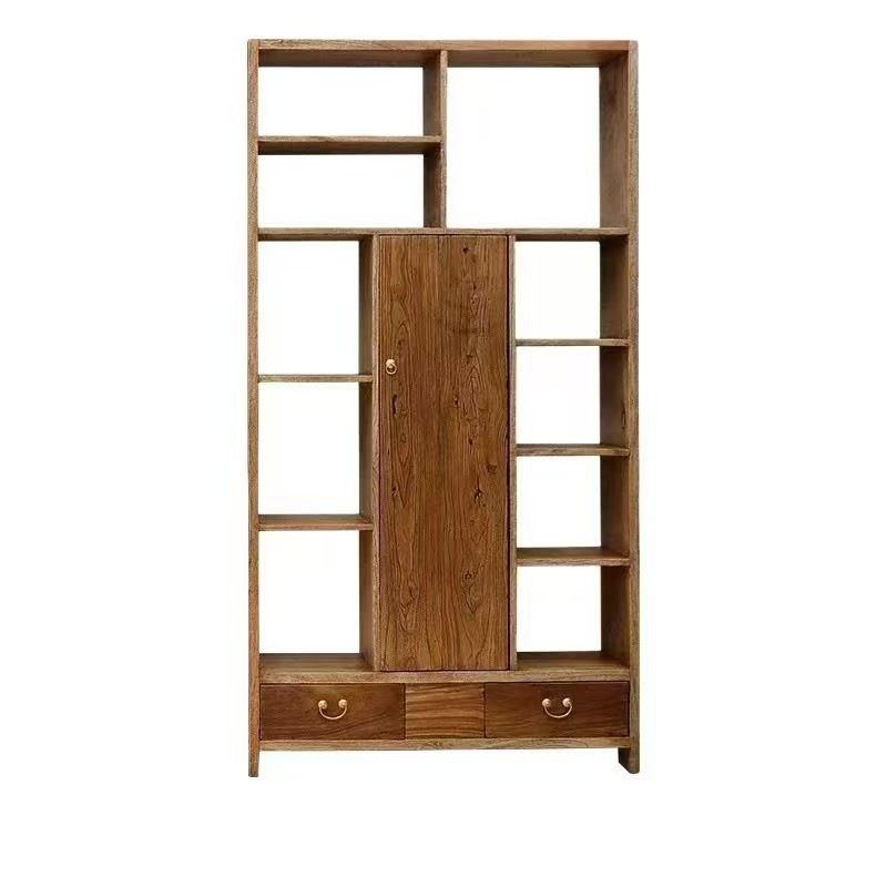 中国風老楡木博古架実木客間壁収納棚風化老楡木多宝閣博古架