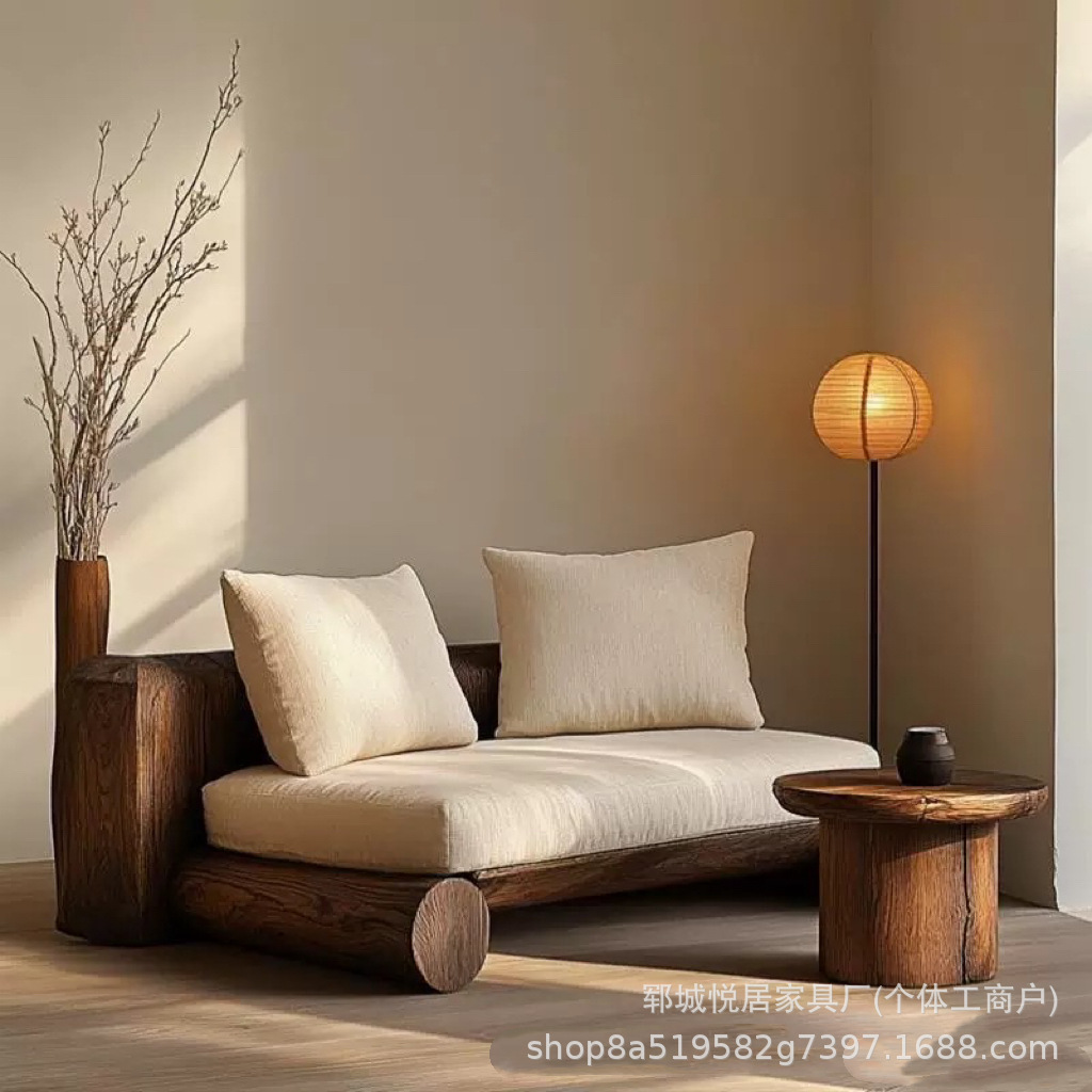 新中式实木沙发客厅小户型装饰直排沙发实木组合沙发椅单人靠背椅