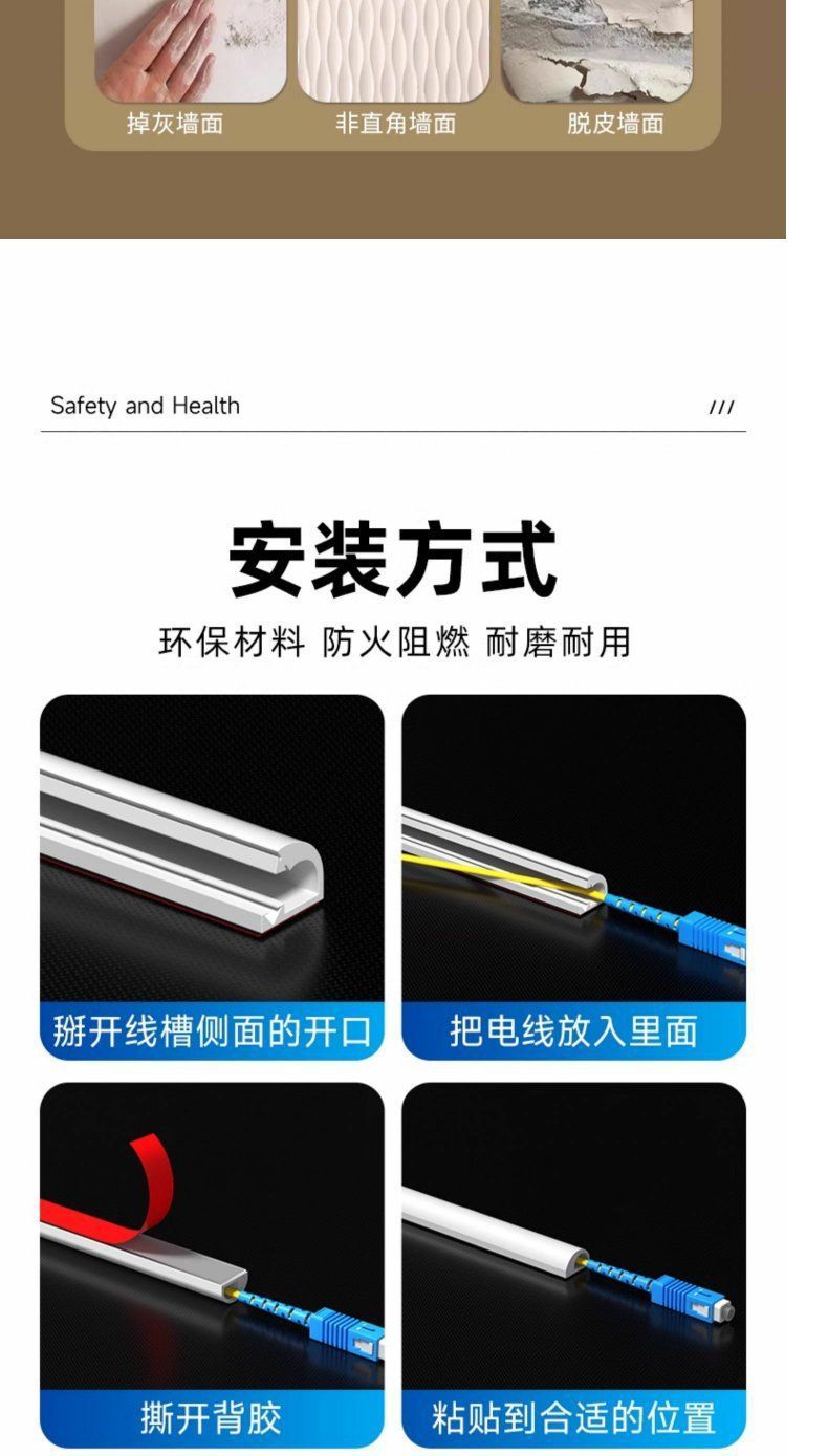 自粘PVC线槽明装电线光纤收纳遮挡条明线隐形走线槽侧开口网线槽