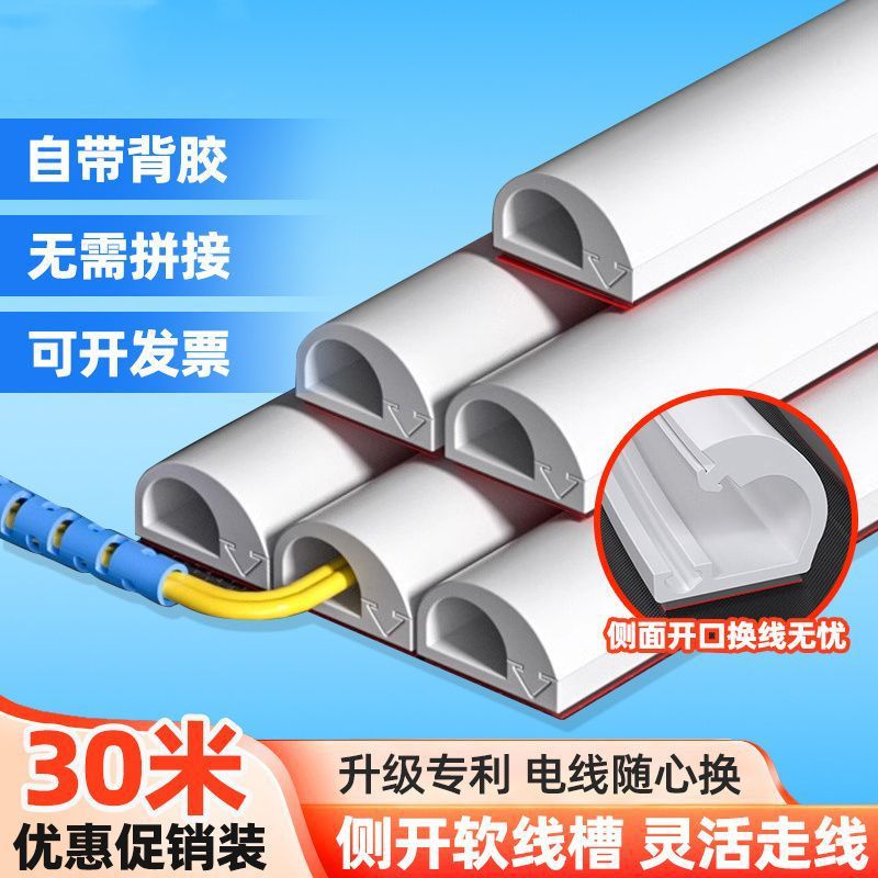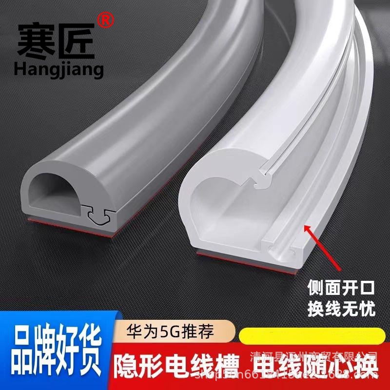 跨境PVC软线槽D14侧开明装隐形线槽pvc自粘D10网线电线软质走线槽