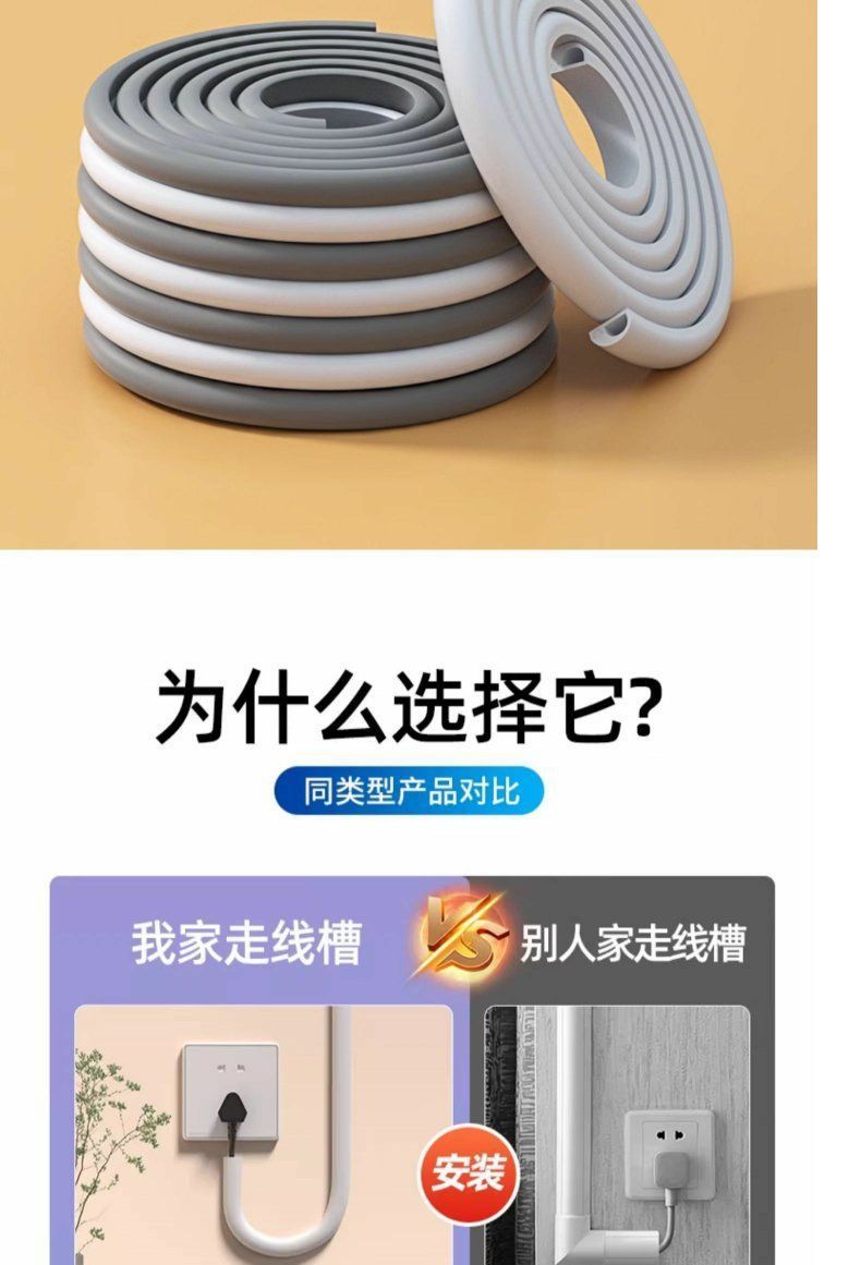 pvc线槽自粘防踩神器隐形装饰家用明装电线网线遮挡软走线槽