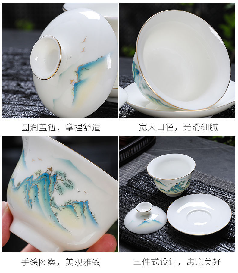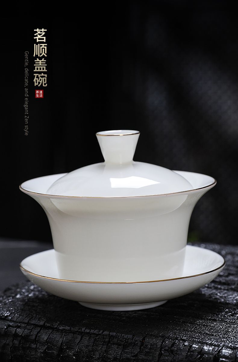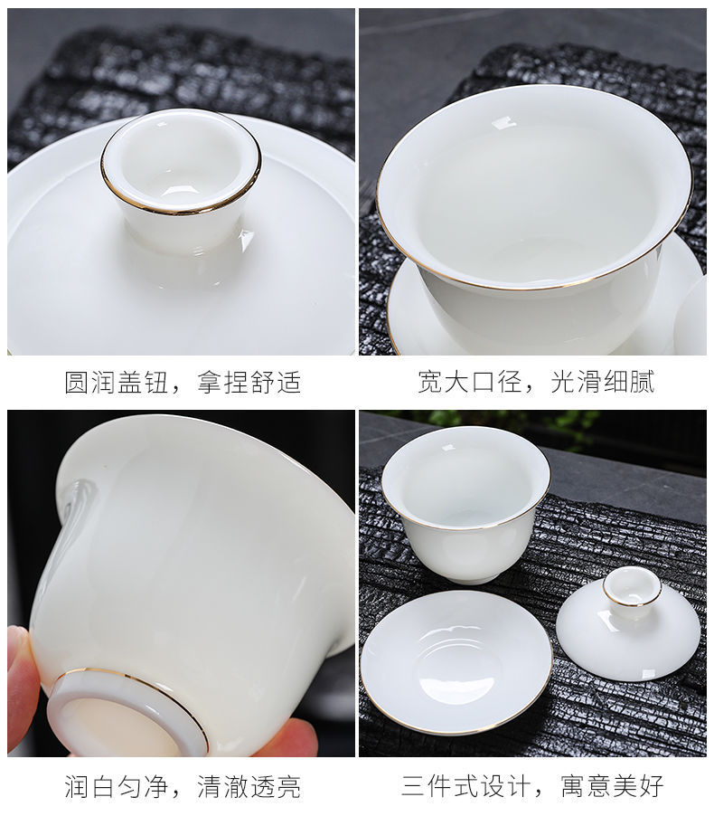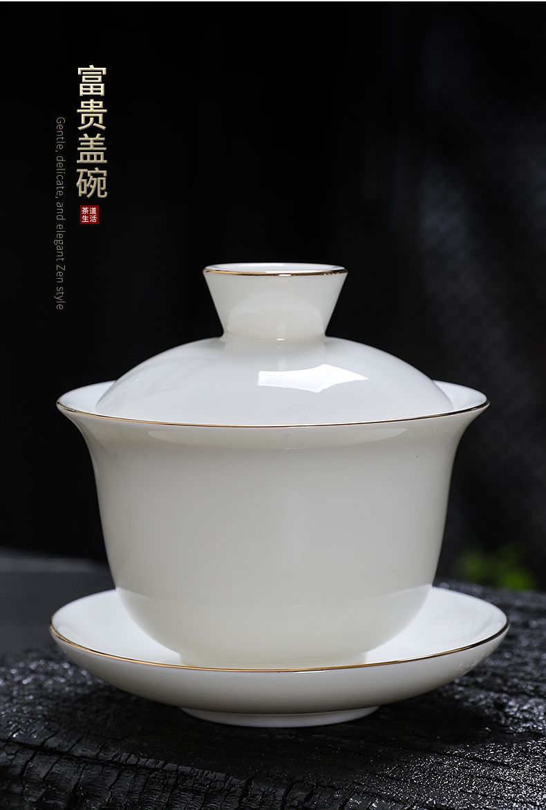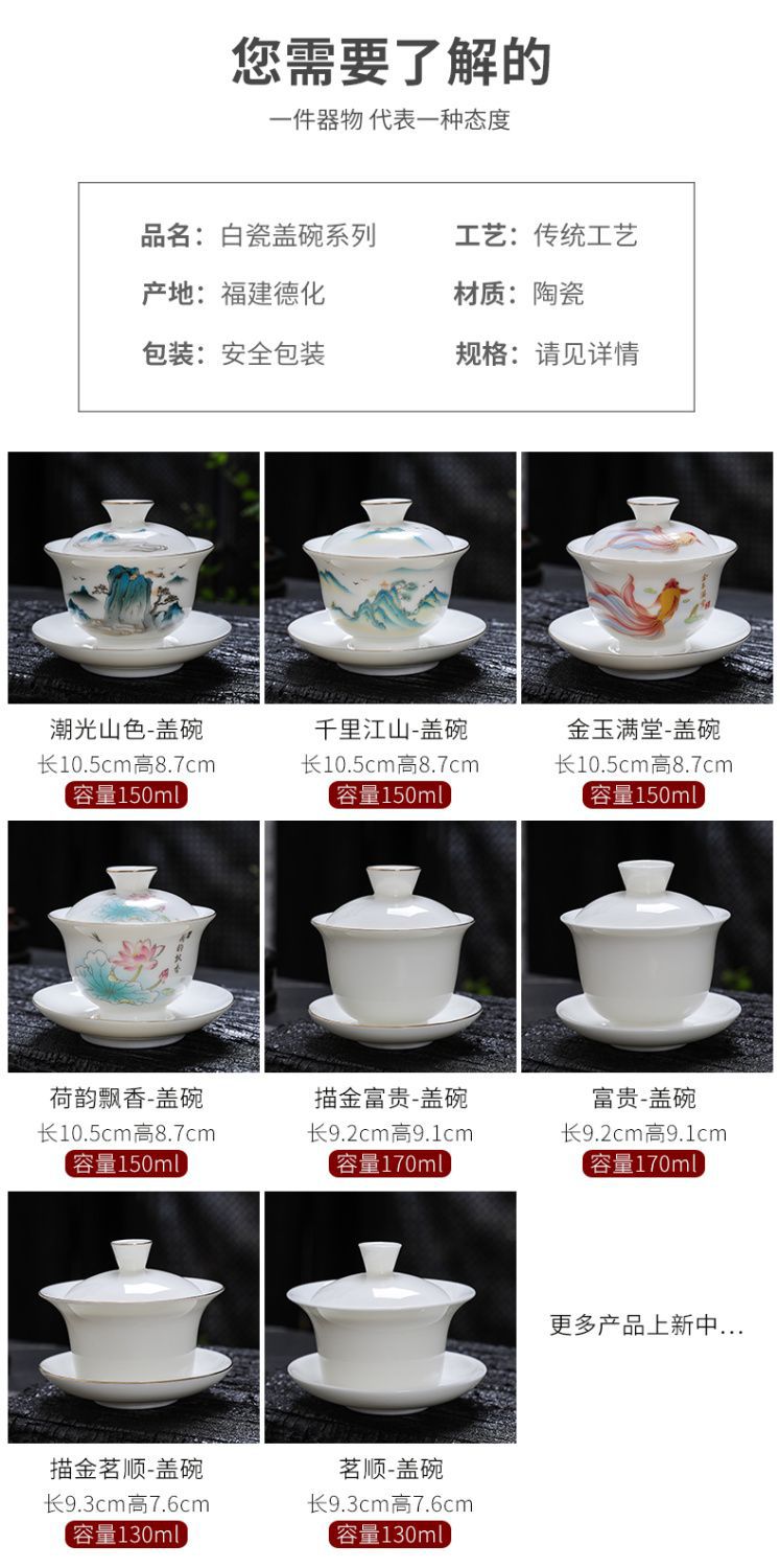 白磁カバーボウルシングルラージティーカップ徳化マトン脂肪翡翠磁器カバーカップティーセットセットティールーム三彩ティーボウル