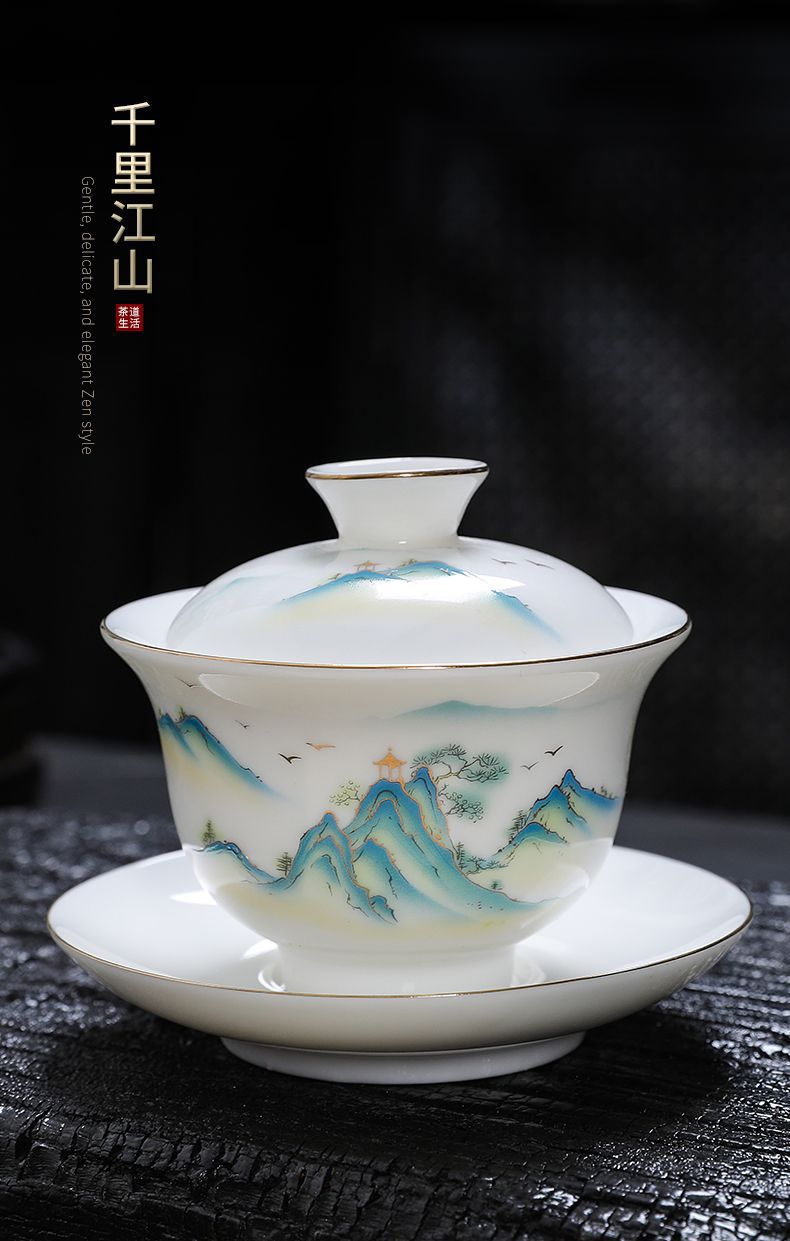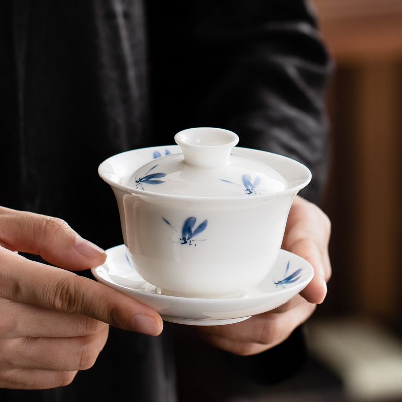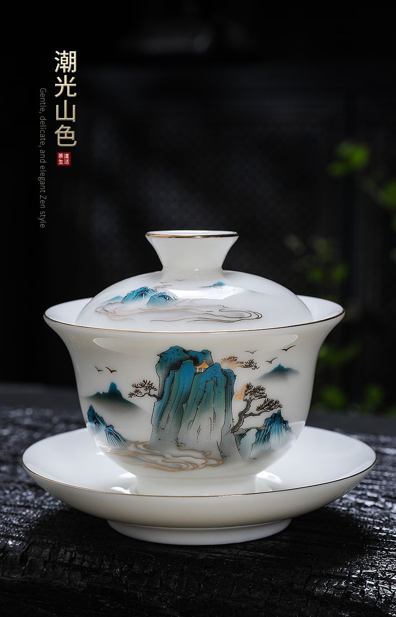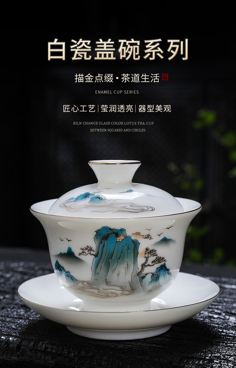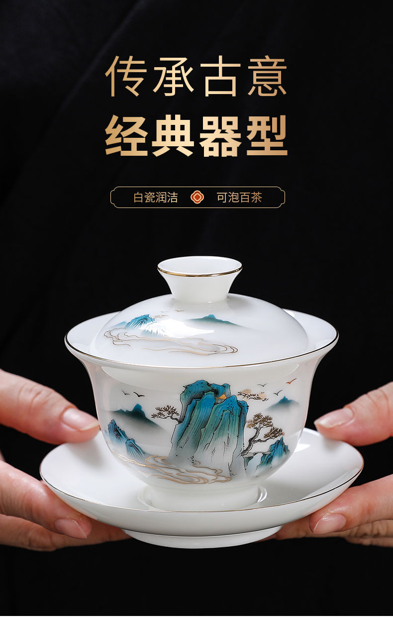 白磁カバーボウルシングルラージティーカップ徳化マトン脂肪翡翠磁器カバーカップティーセットセットティールーム三彩ティーボウル