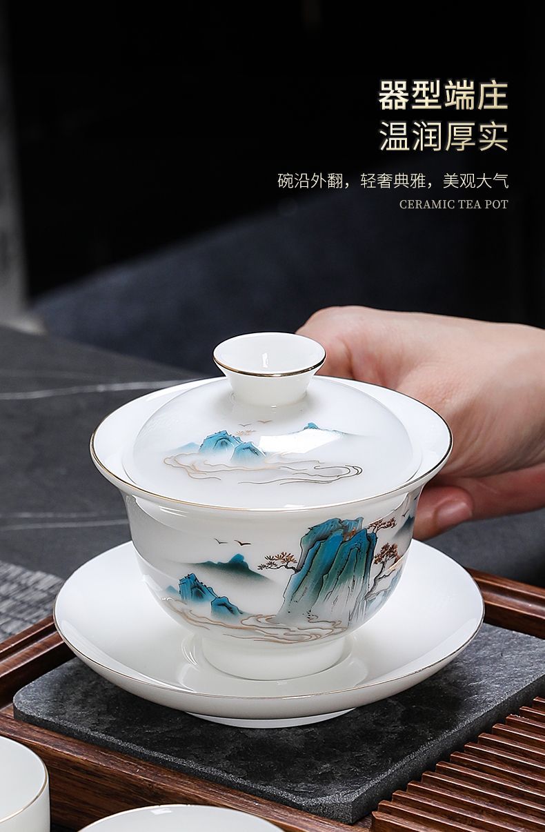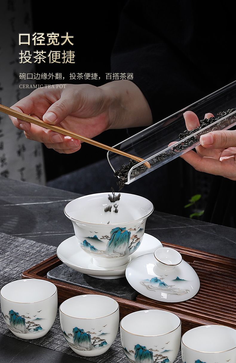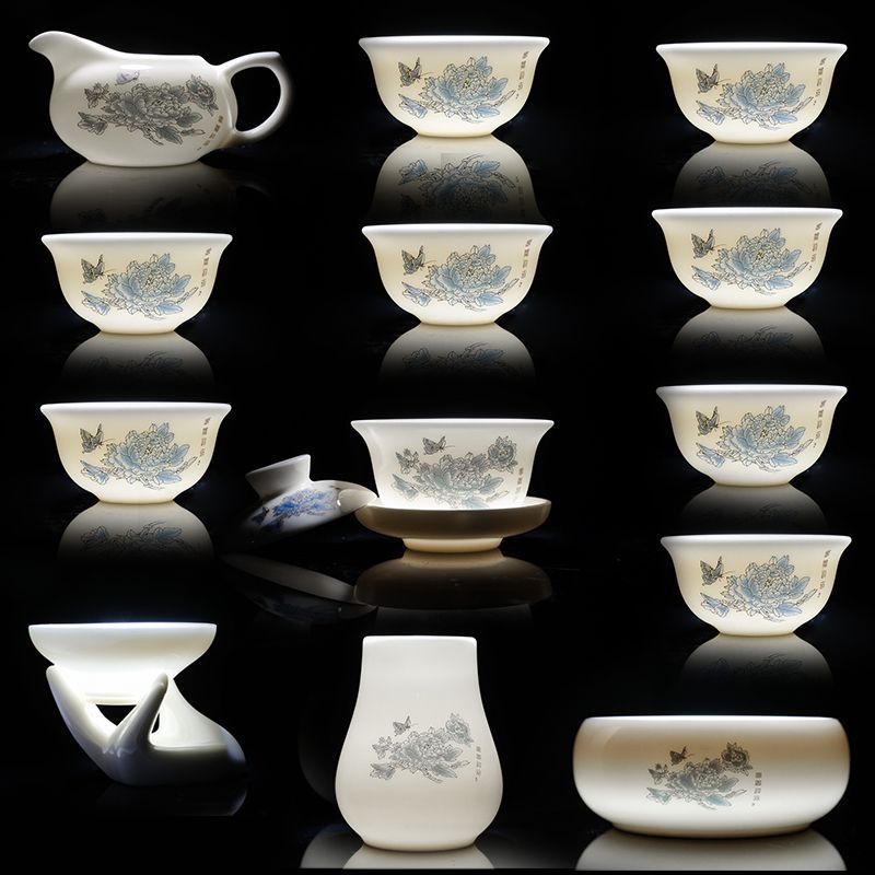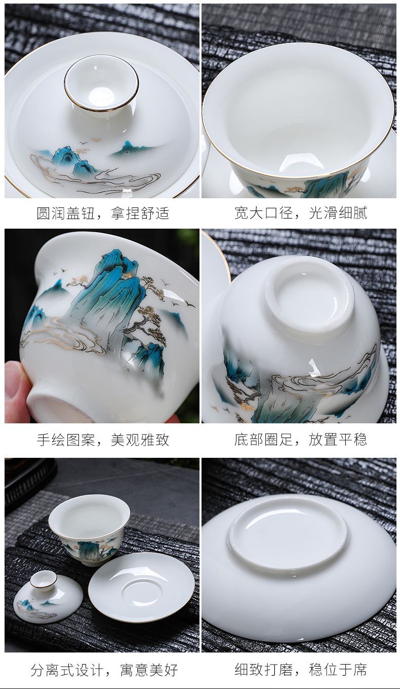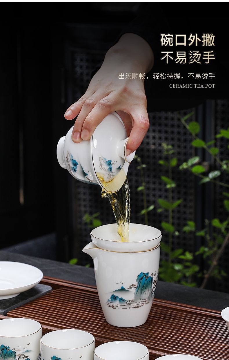 羊脂玉カンフー白磁茶器セット中国式家庭用軽豪華オフィス高級カップ祝日イベントギフトボックス