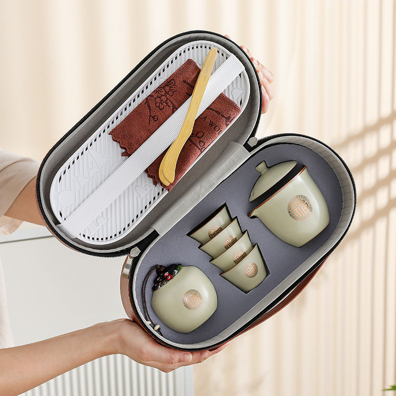 旅行茶器セット汝窯陶磁器携帯型快客杯哥窯セット会社活動年会お土産