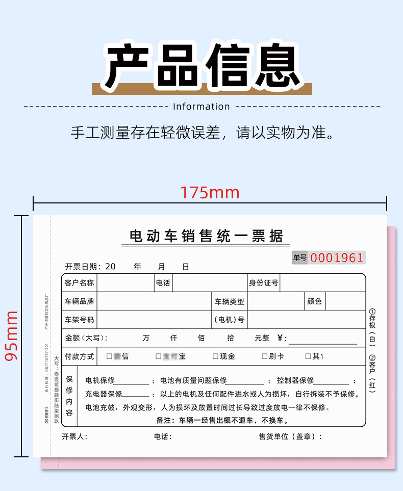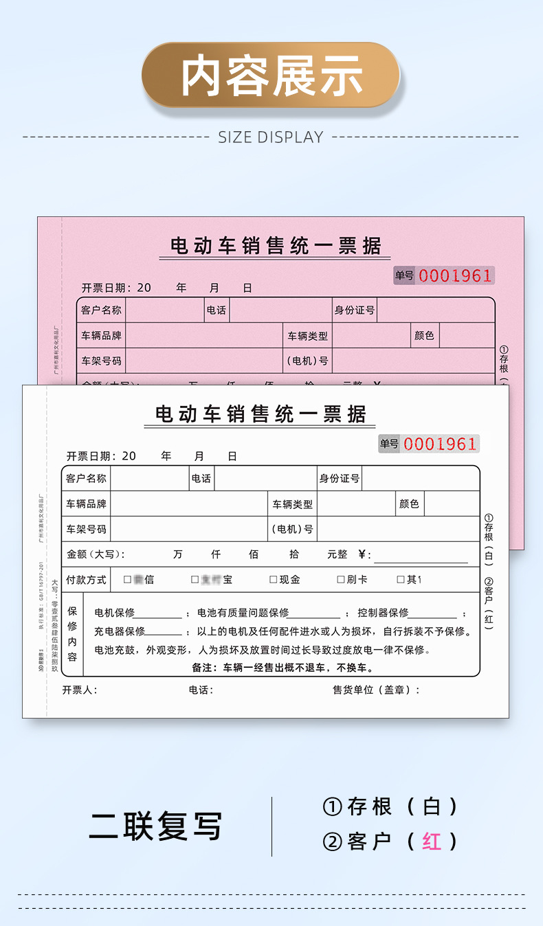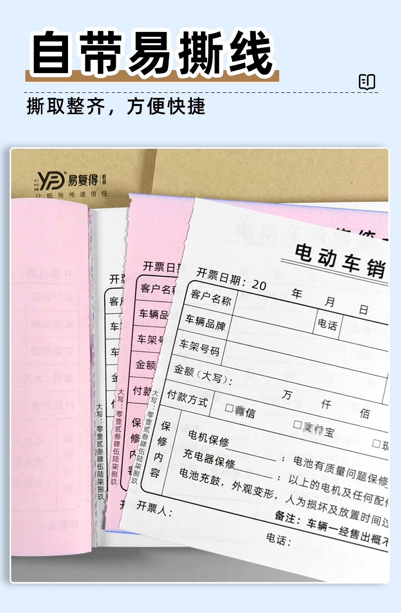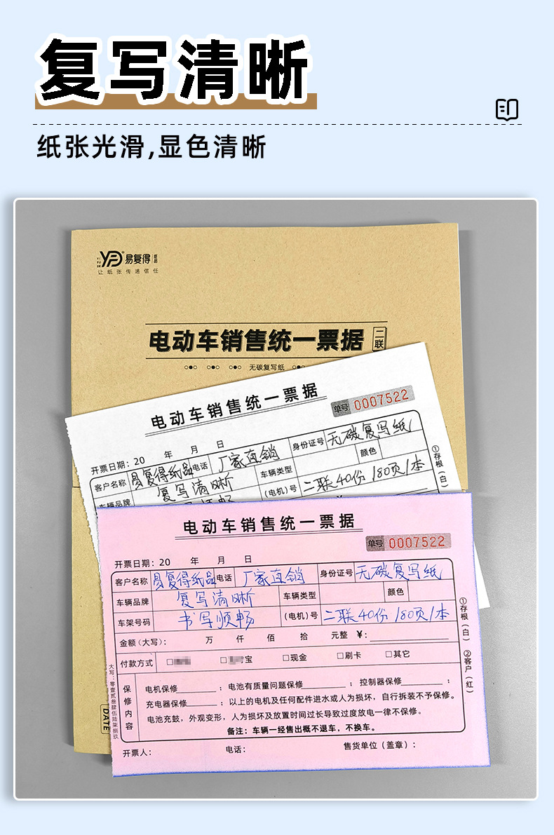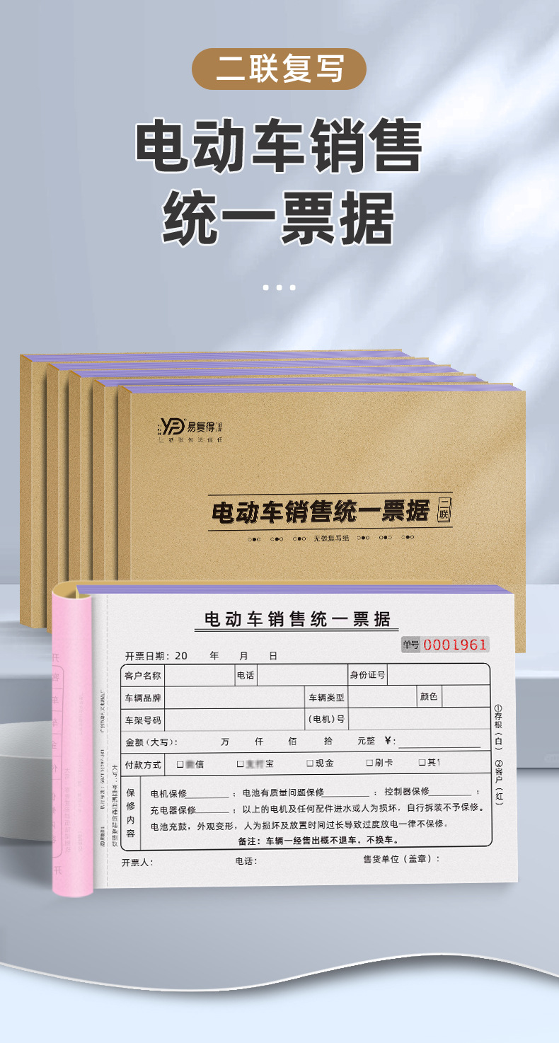 易復得電気自動車販売統一手形電気自動車販売領収書電車売買伝票保証証明書