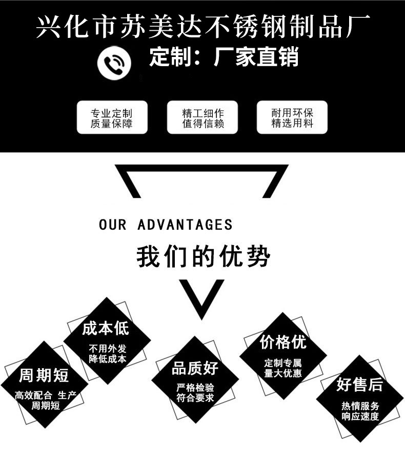 公司本着“诚信经营、倡导规范”的经营理念,立足戴南不锈钢交易城,充分发挥地域和产业优势,服务全国各地和国外的客户,提供最具专业化的螺纹连接解决方案。兴化市苏美达不锈钢制品厂的诚信、实力和产品质量获得业界的认可。欢迎各界朋友莅临参观、指导和业务洽谈。