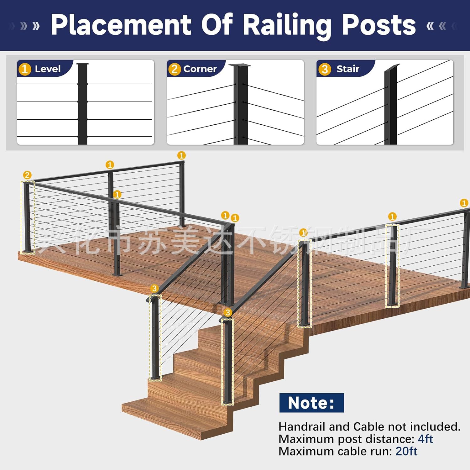 风靡欧美的楼梯立柱钢丝绳连接配件,304不锈钢护栏立柱,可搭配各种304/316钢丝绳连接器以及钢丝绳。可咨询客服提供需要的搭配报价~