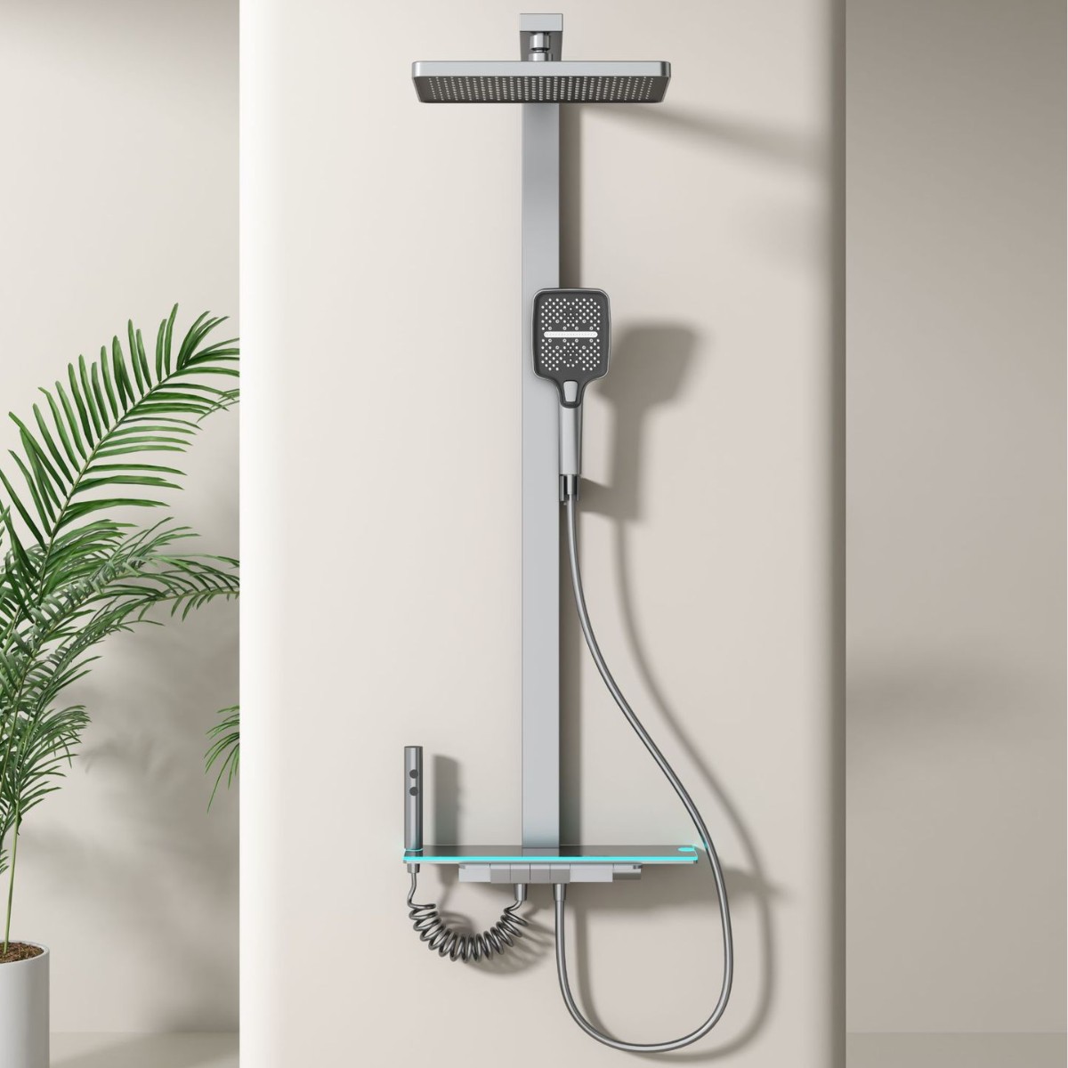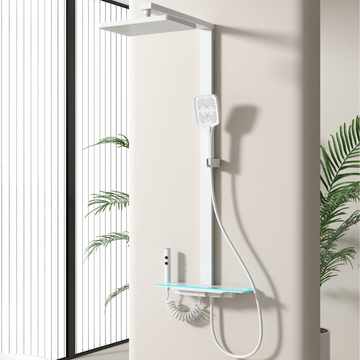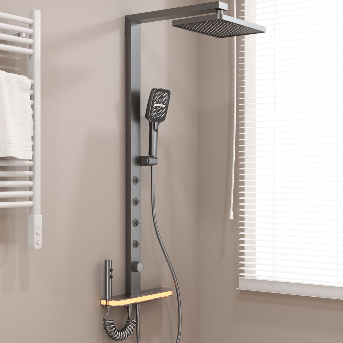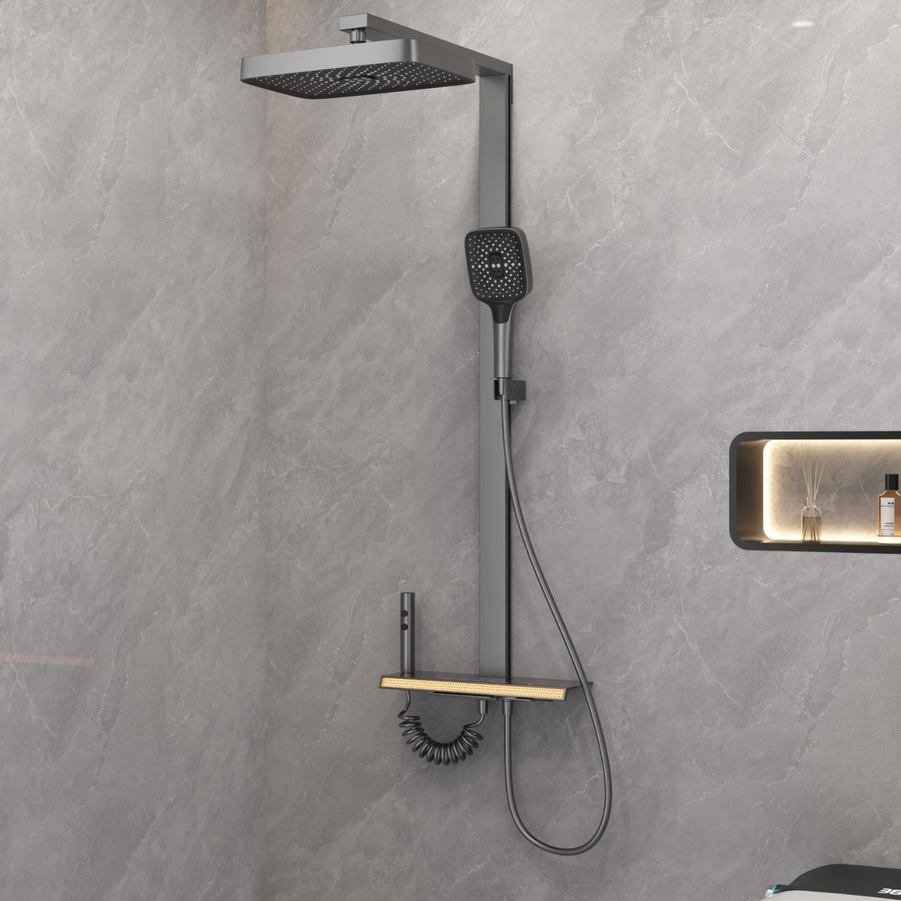 スマートバスルーム恒温デジタルディスプレイバックウォッシュシャワーヘッド雰囲気ライト収納テーブルバスシャワーセット